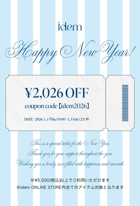 2025.12.18 12/18(Thu.)20:00~ 今年最後の新作アイテム販売スタート🎄 2025.12.11 【重要なお知らせ】佐川急便の配送遅延について 2025.12.10 ⳹ 4h限定!新作のみ2buy10%OFF ⳼12/10(Wed.)20:00~販売スタート! 2025.12.08 年末年始の営業について