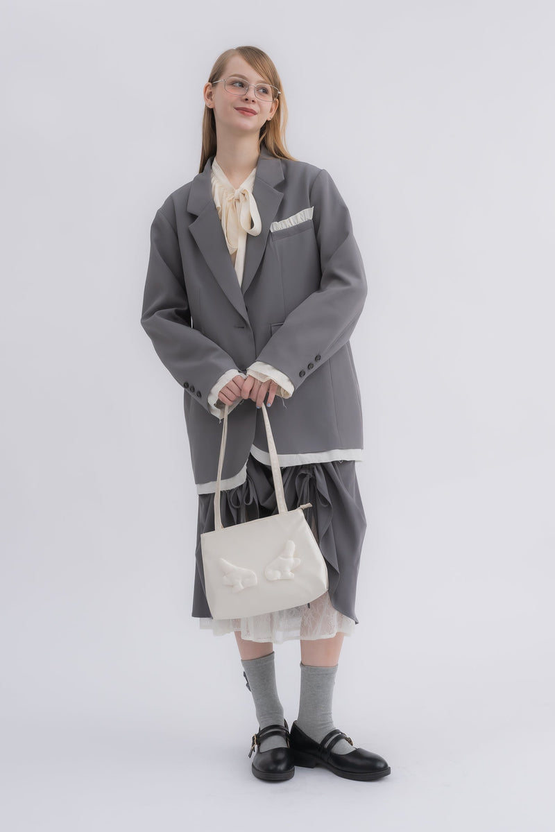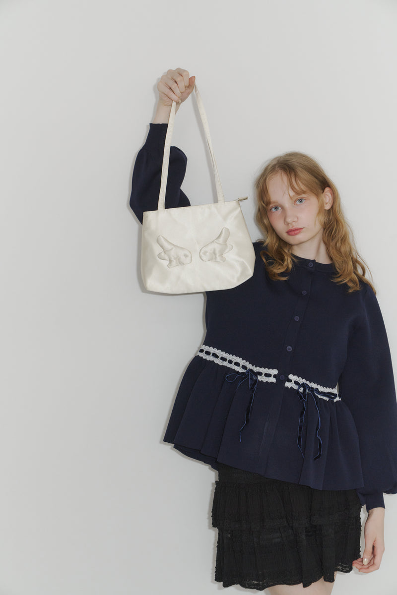 立体的な羽モチーフが目を惹く、コンパクトながら存在感のあるミニバッグ。
