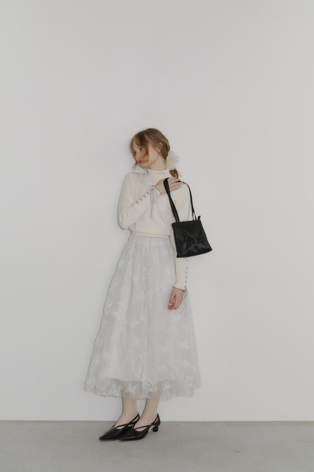 ・立体感のあるエンボス刺繍の羽モチーフがポイント