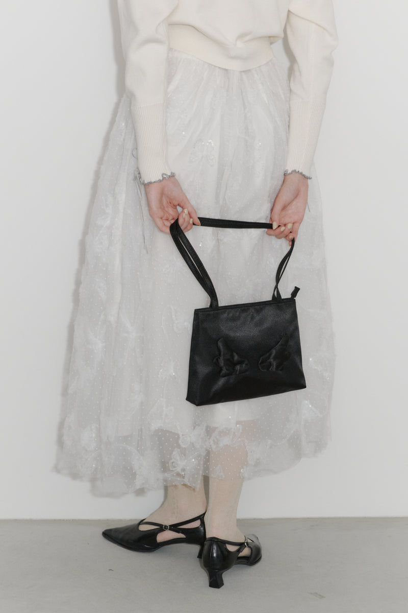 立体的な羽モチーフが目を惹く、コンパクトながら存在感のあるミニバッグ。