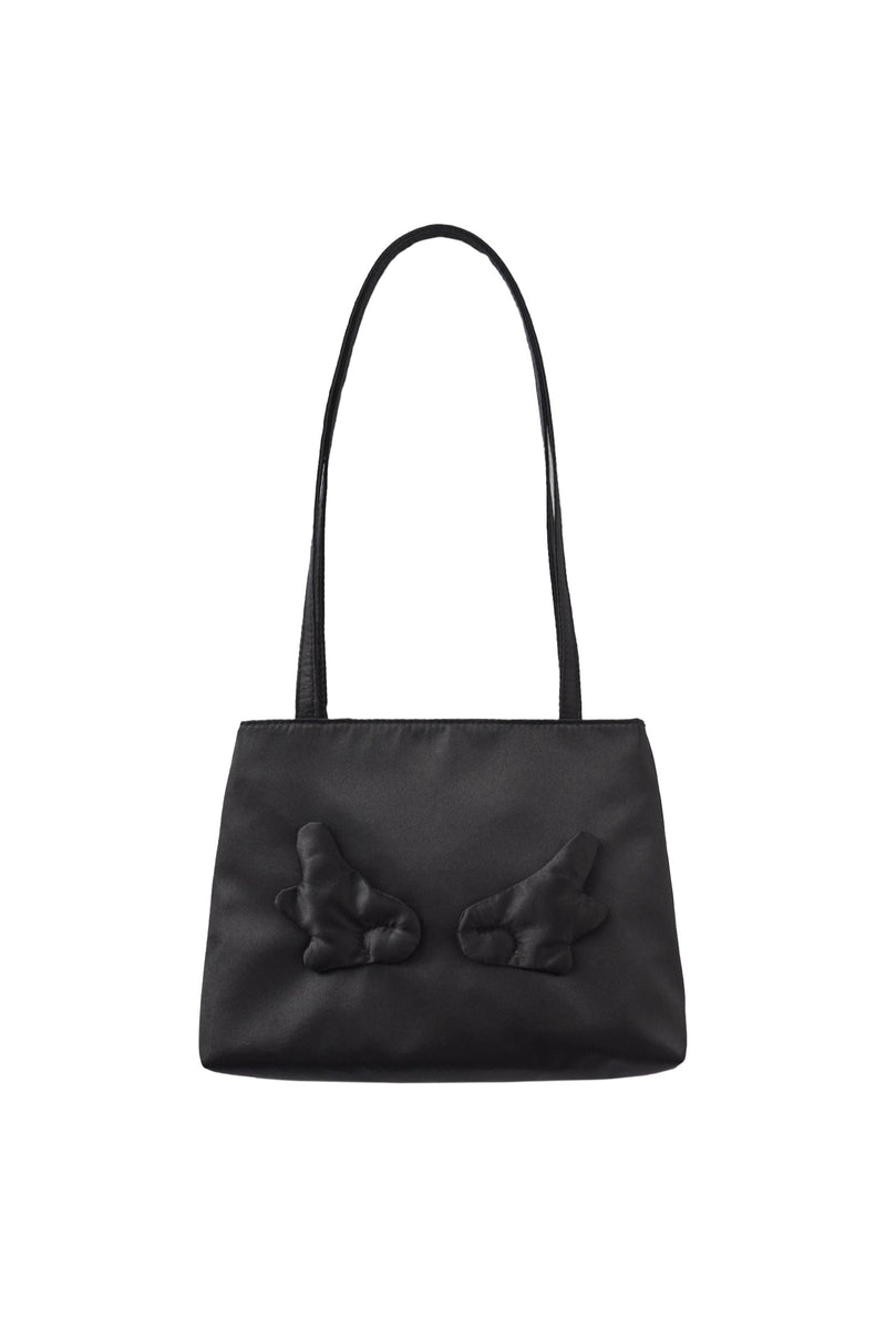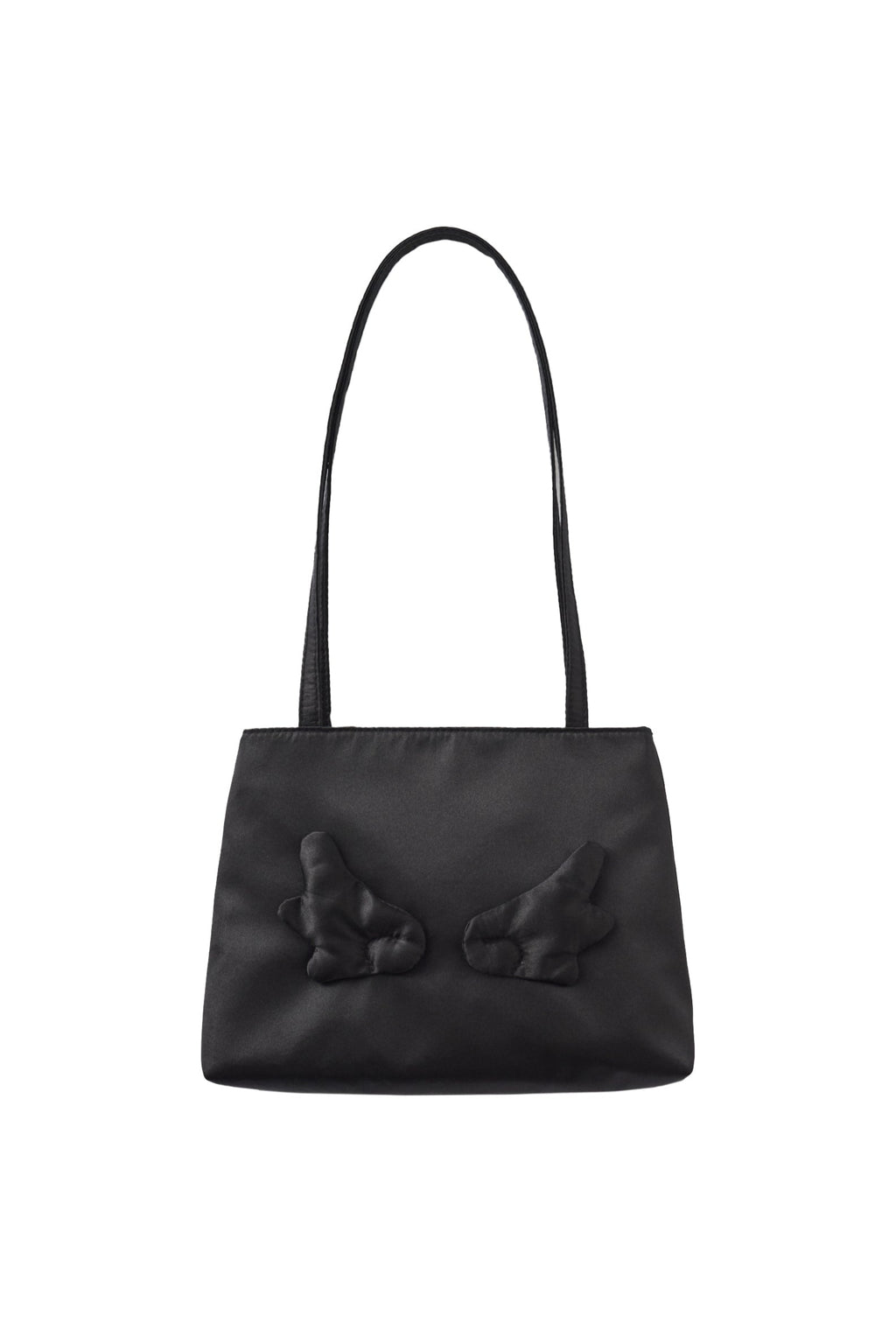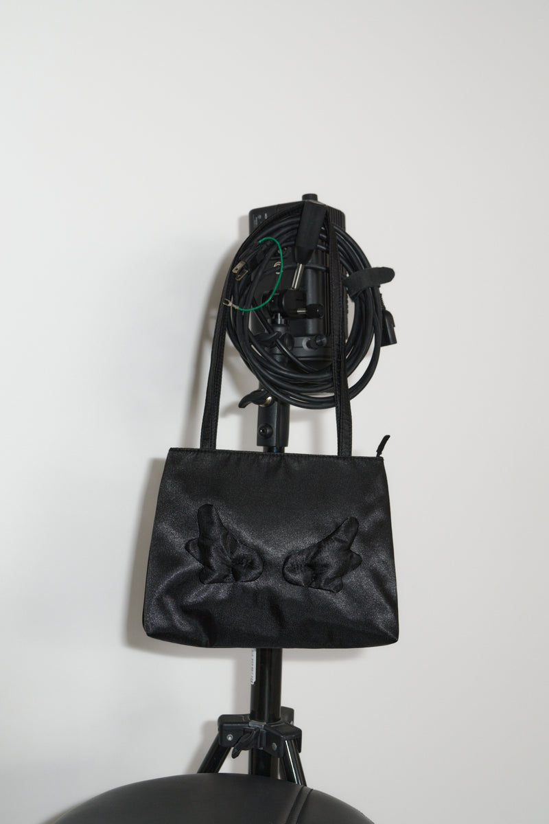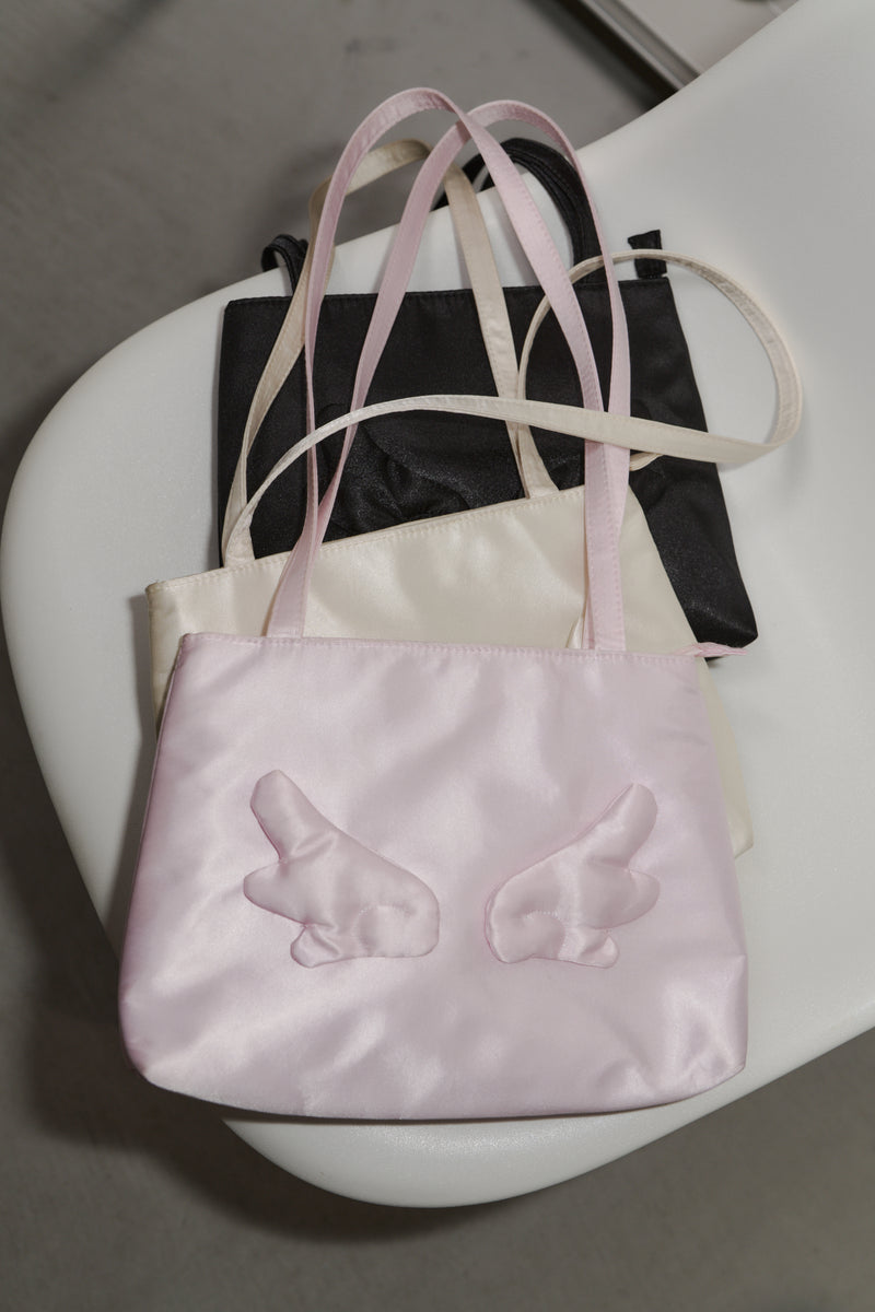 羽モチーフが印象的なサテン風ナイロンバッグ