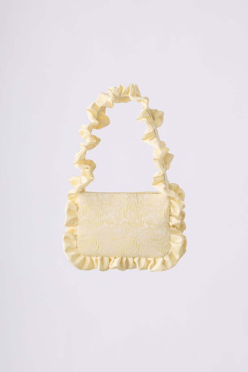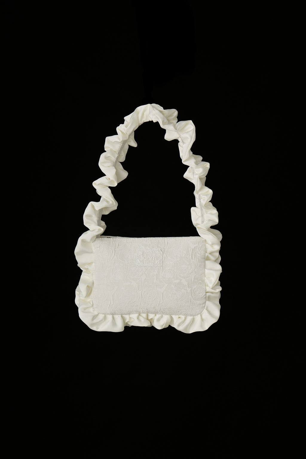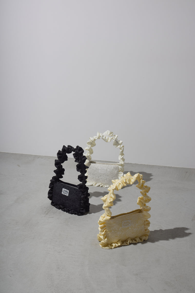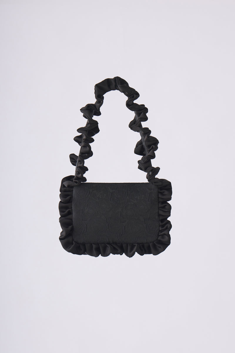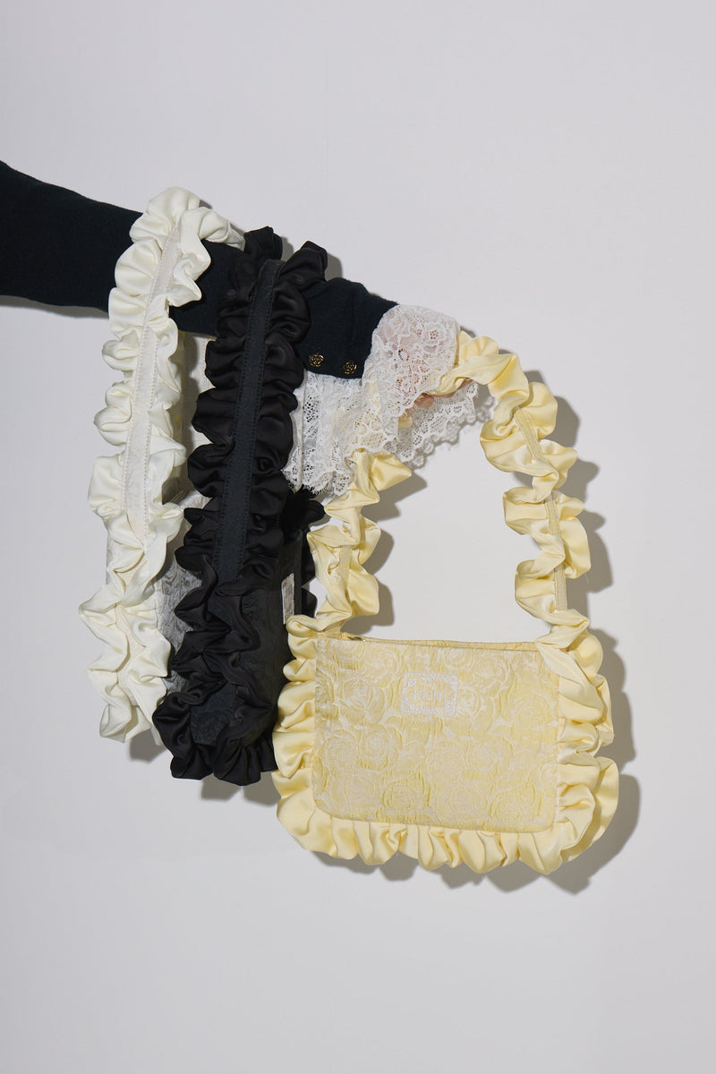 上品でクラシカルなデザインながら、サテンフリルがほどよく甘さを添える大人可愛いバッグ。