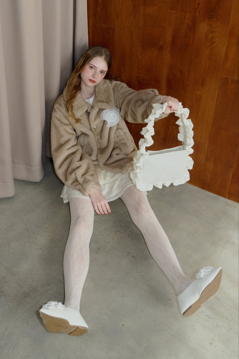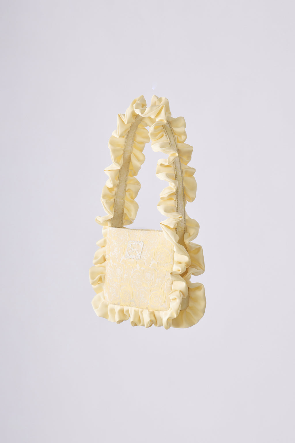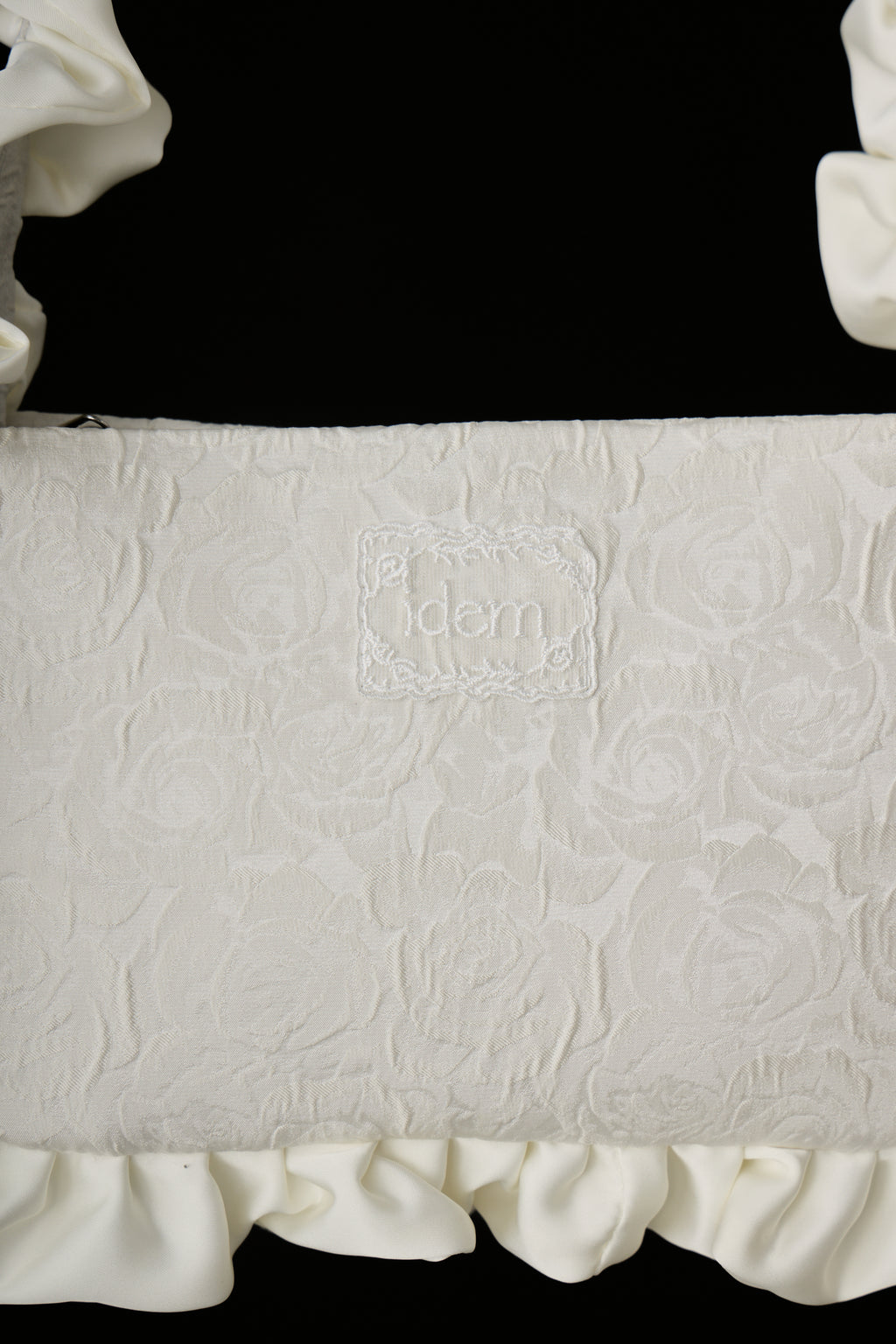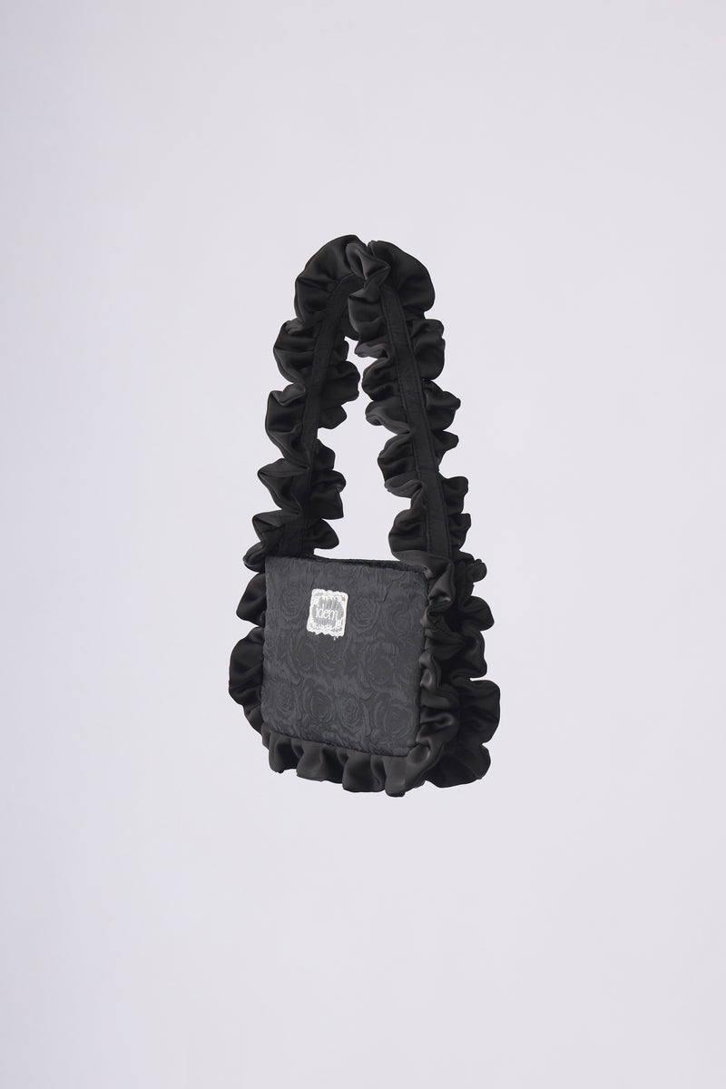 上品でクラシカルなデザインながら、サテンフリルがほどよく甘さを添える大人可愛いバッグ。