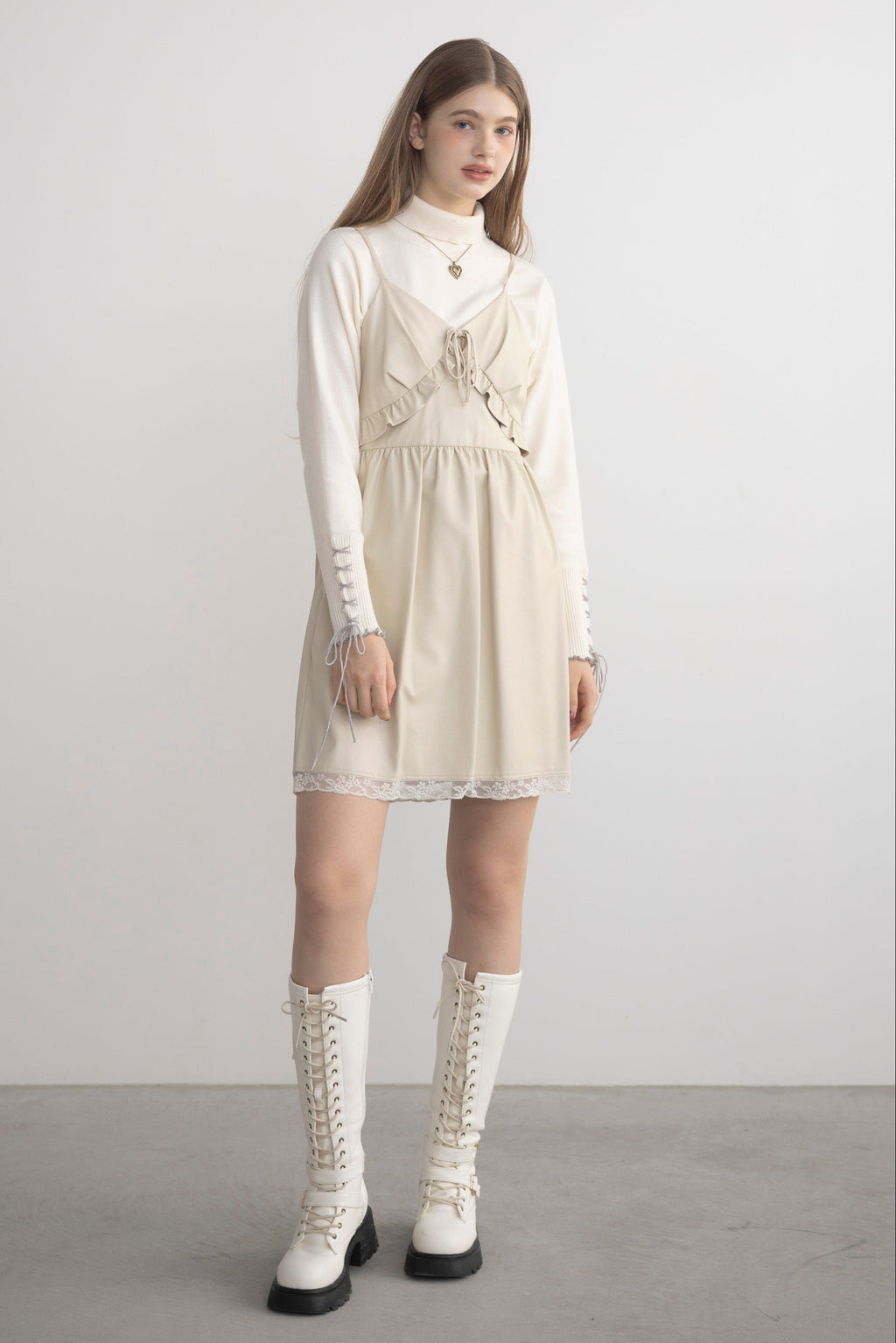 ・裾のスカラップコットンレースでトレンド感をプラス