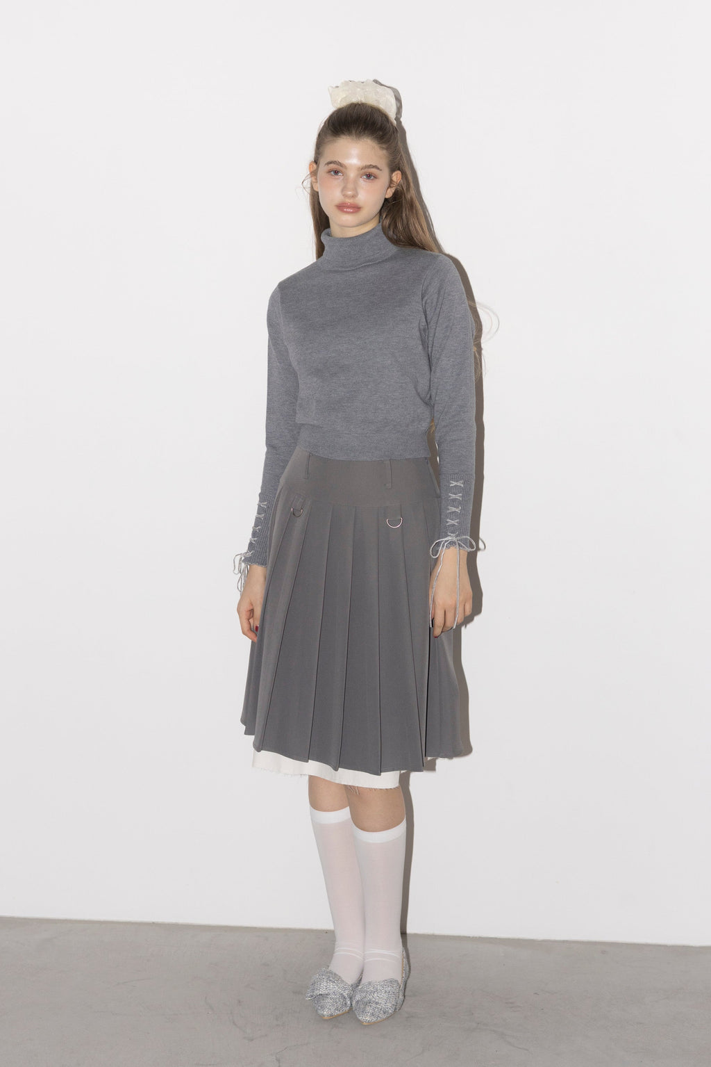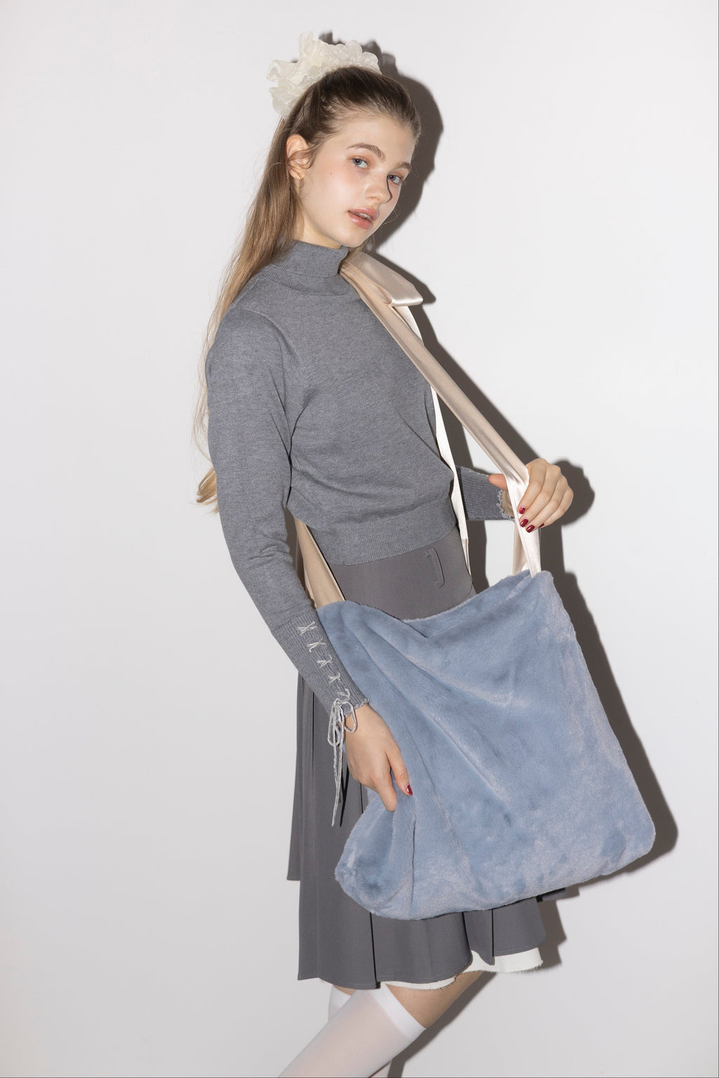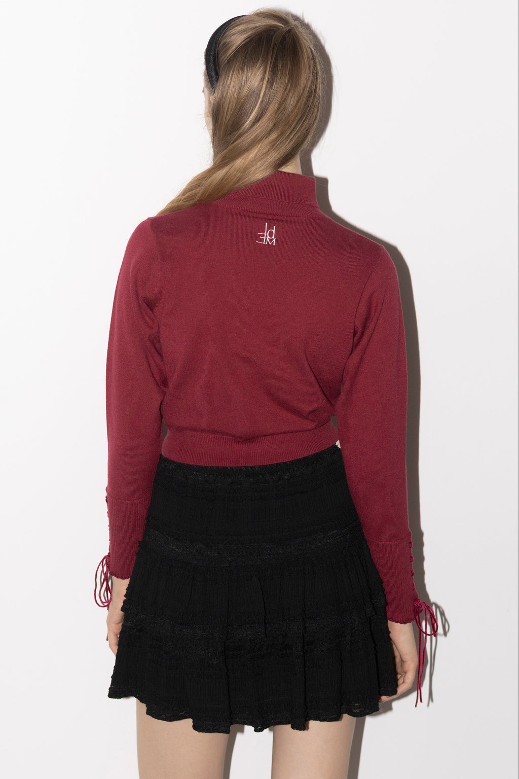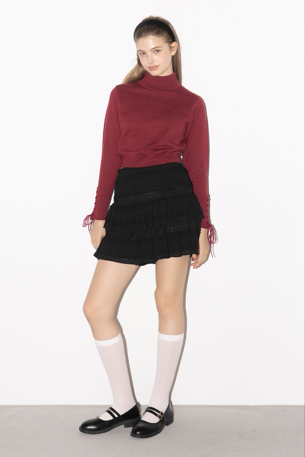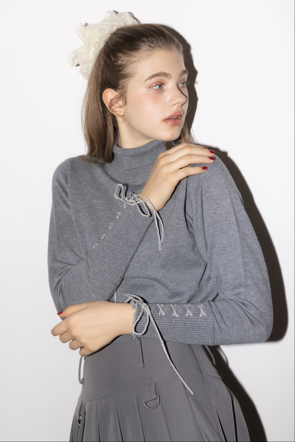 ・袖口は華奢なベロアリボンのレースアップ