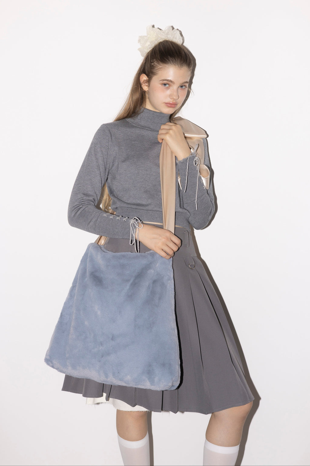 冬はアウターから袖リボンを覗かせて着こなすのもおすすめ。