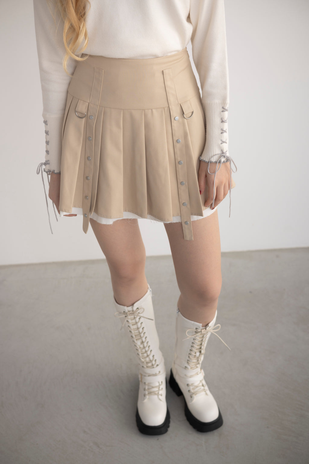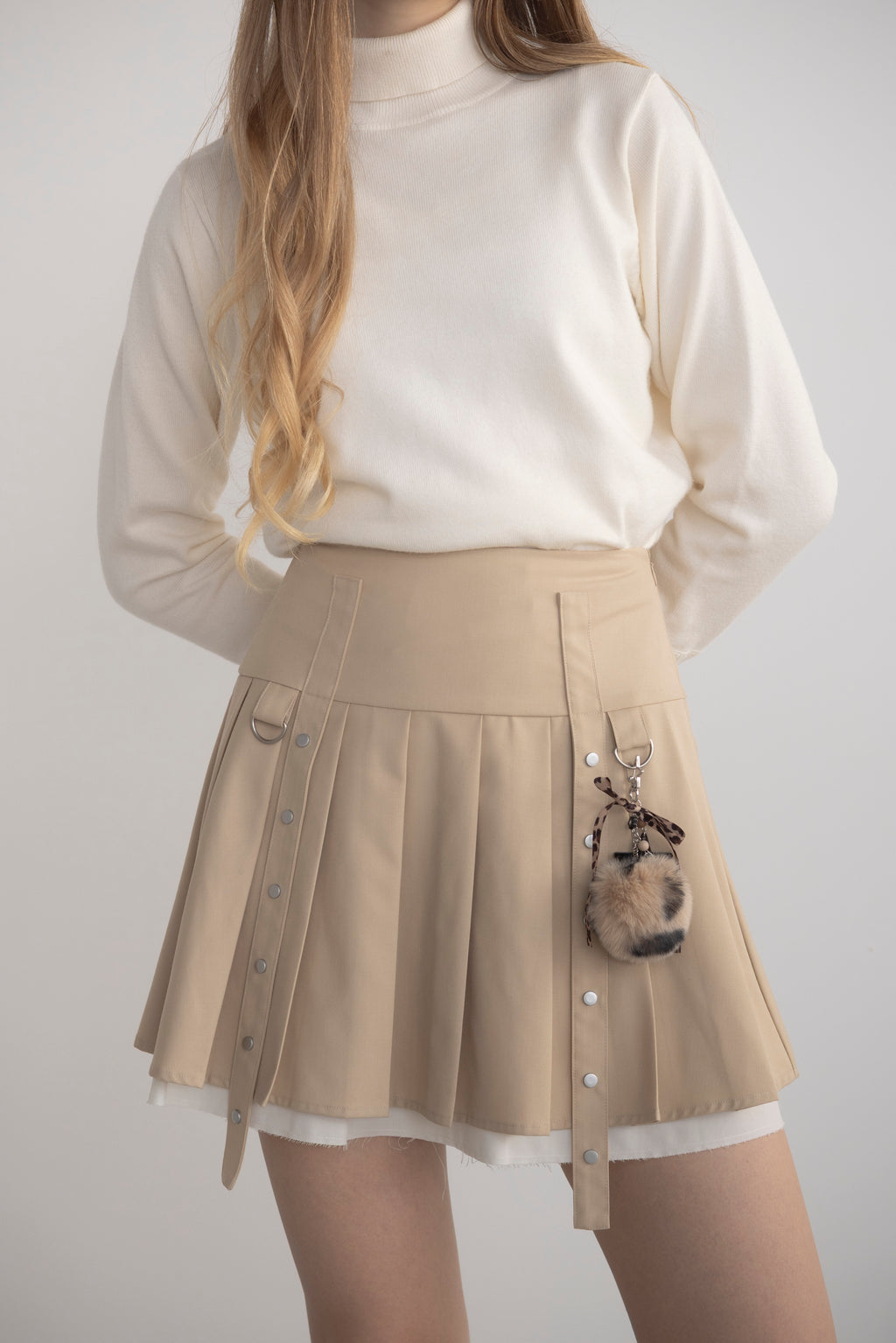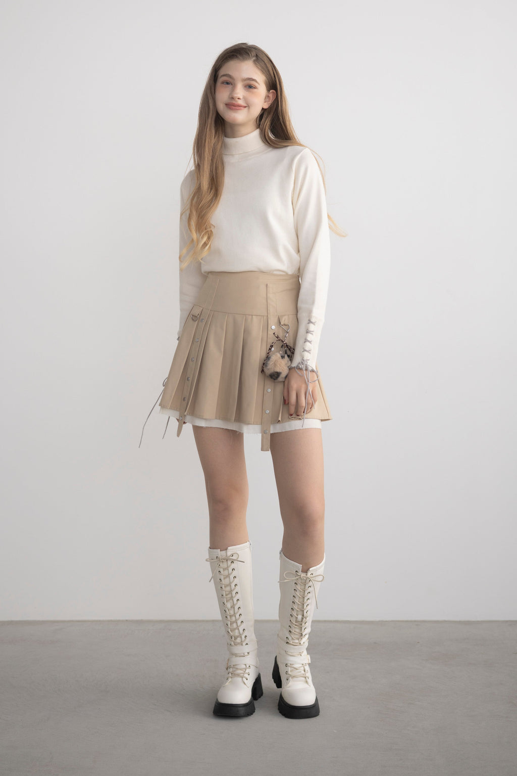 ミニ丈ながらもプリーツの切り替えが気になる下半身を自然にカバー。