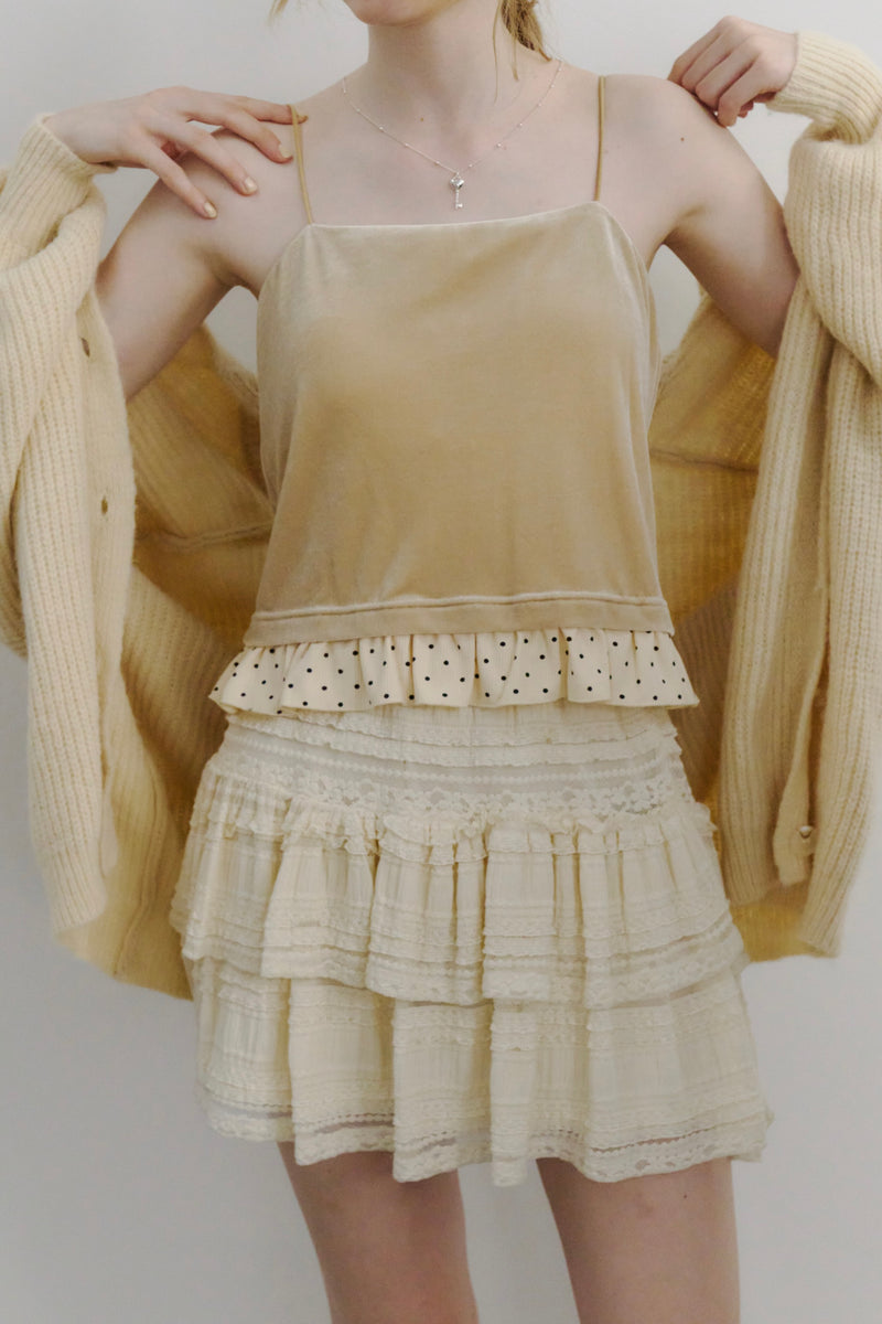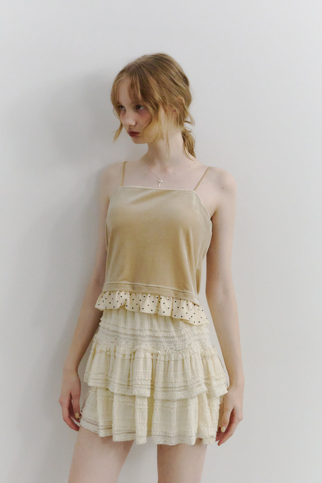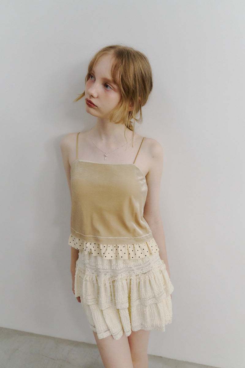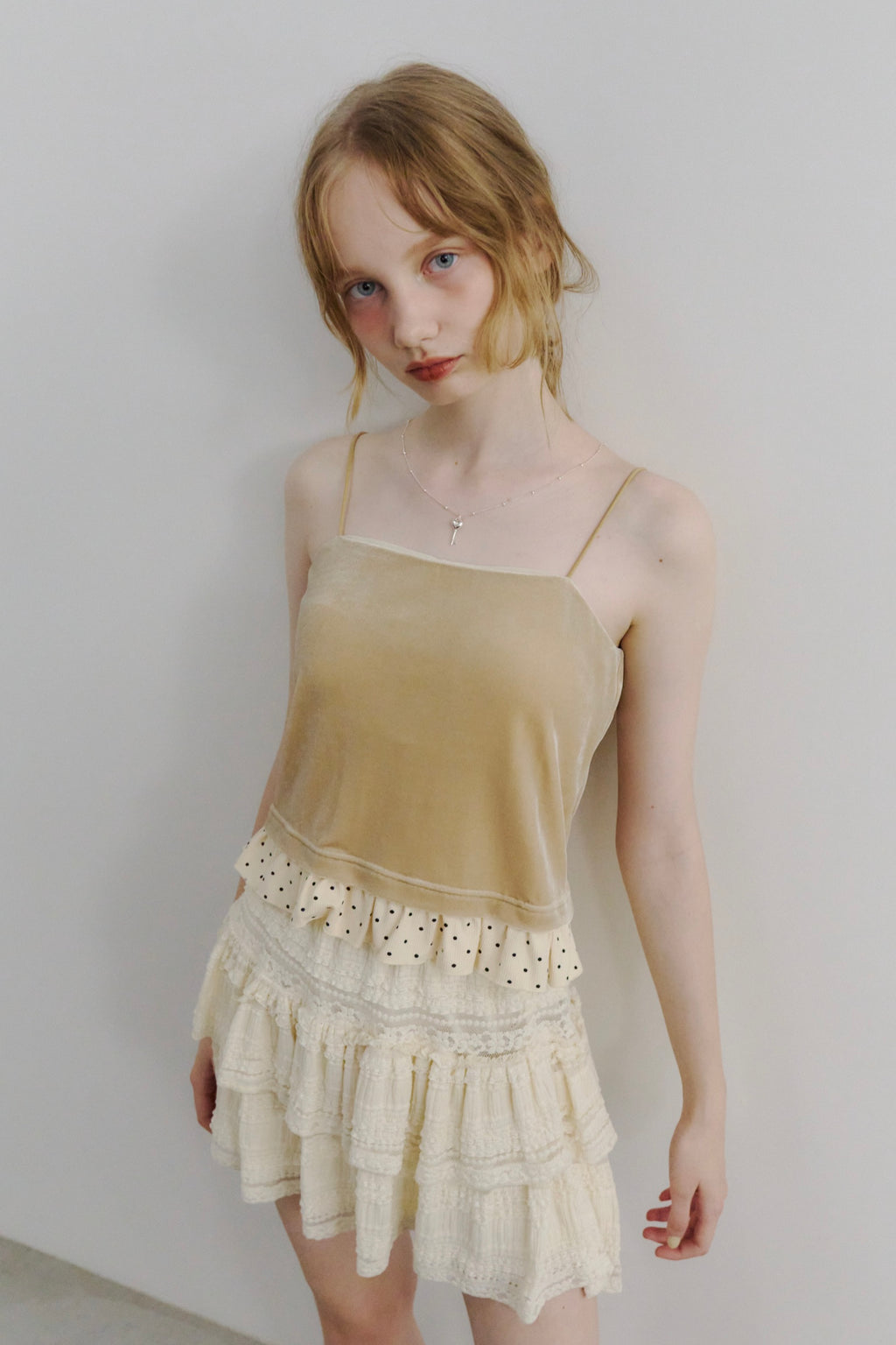 キャミの甘さを活かして、フレアスカートと合わせたフェミニンスタイルもおすすめ。