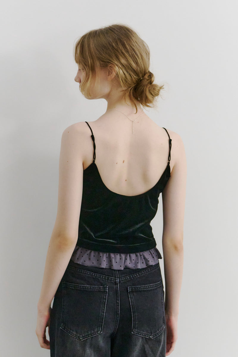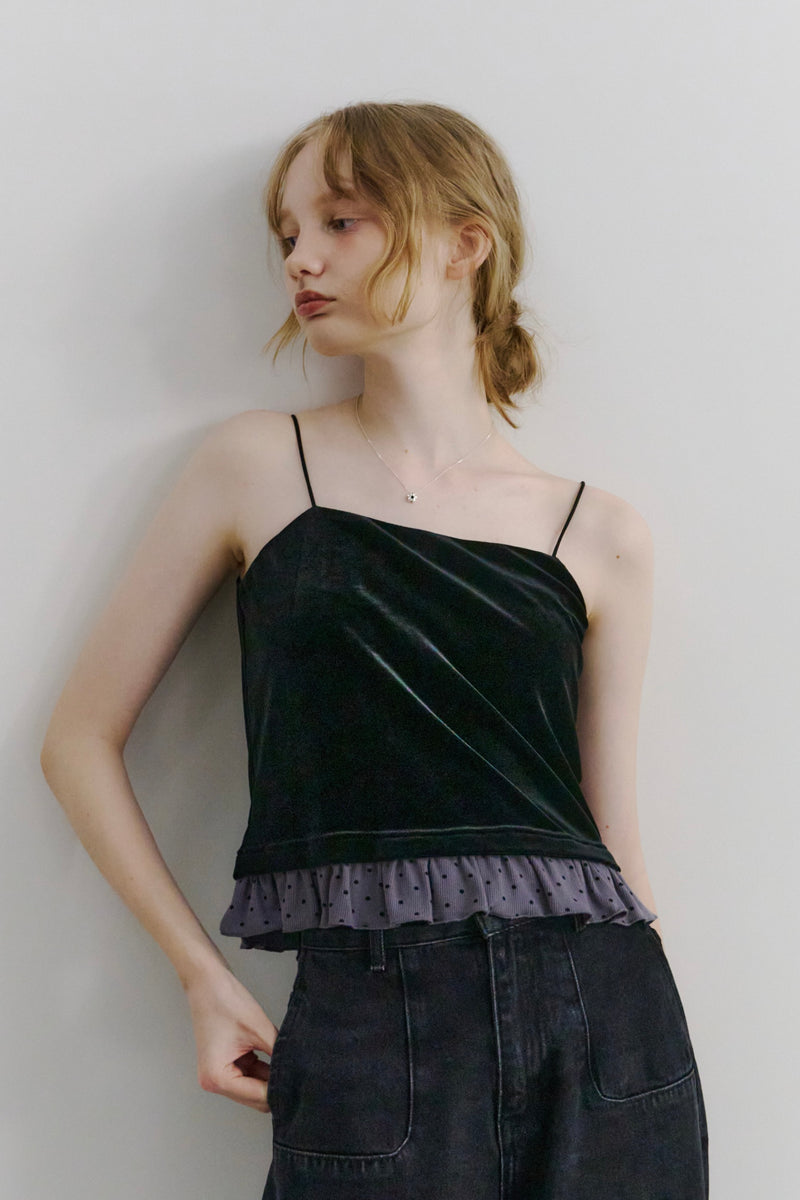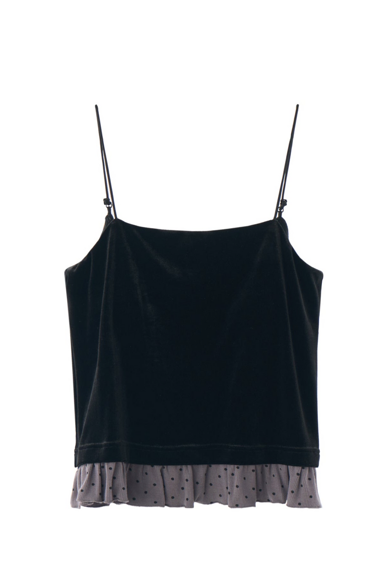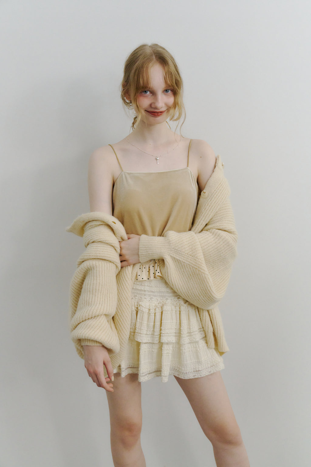 キャミの甘さを活かして、フレアスカートと合わせたフェミニンスタイルもおすすめ。