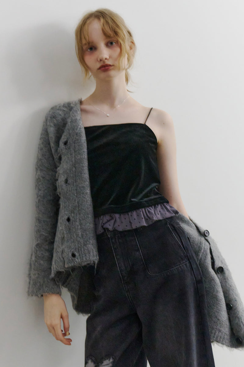 ・裾に重ねたドット柄のリブフリルが程よい甘さをプラス