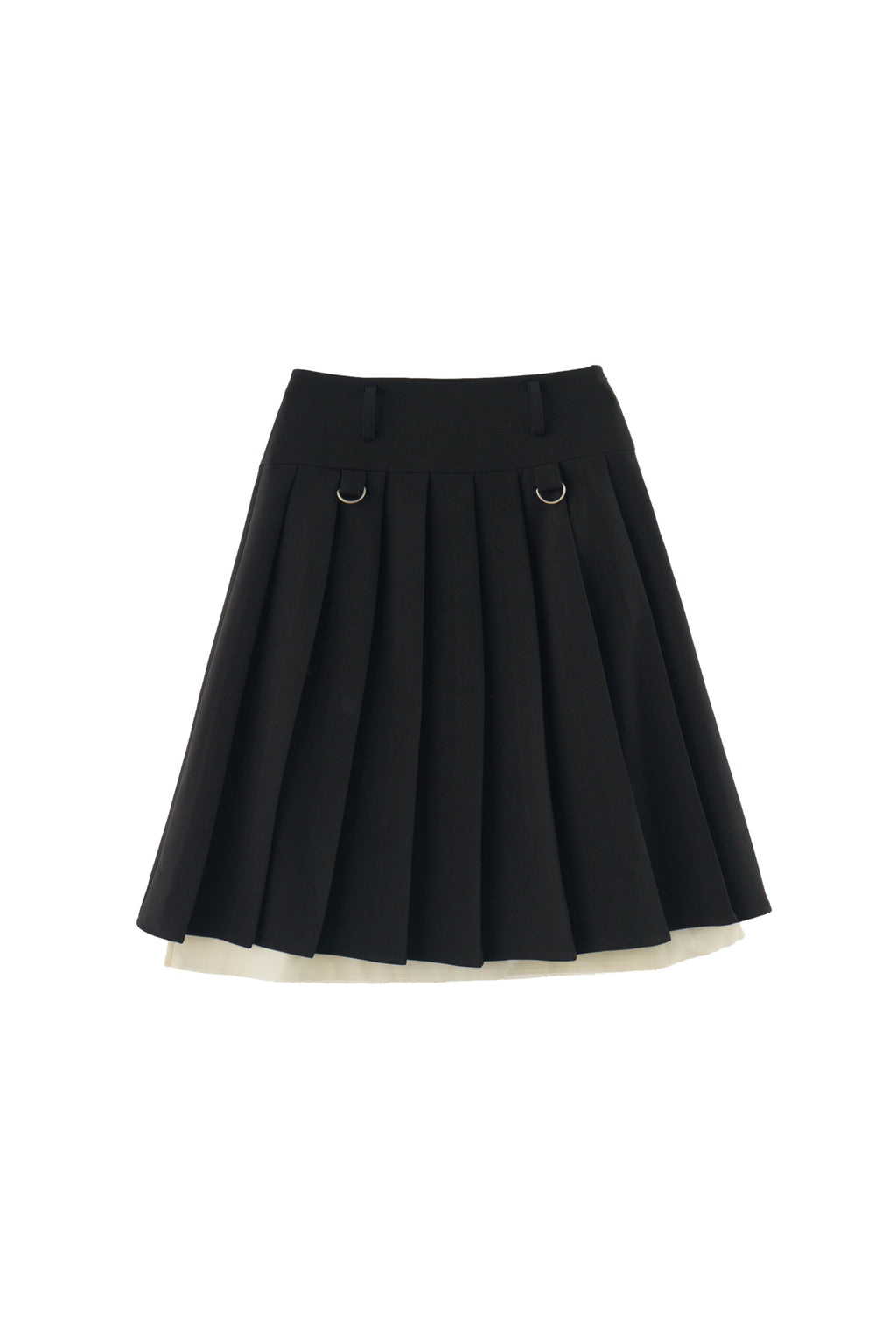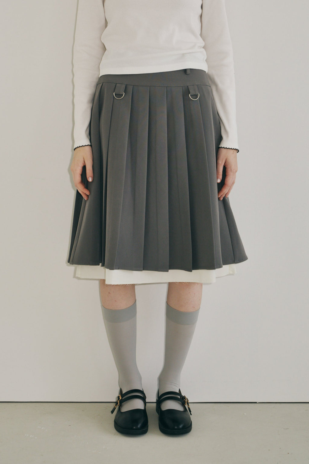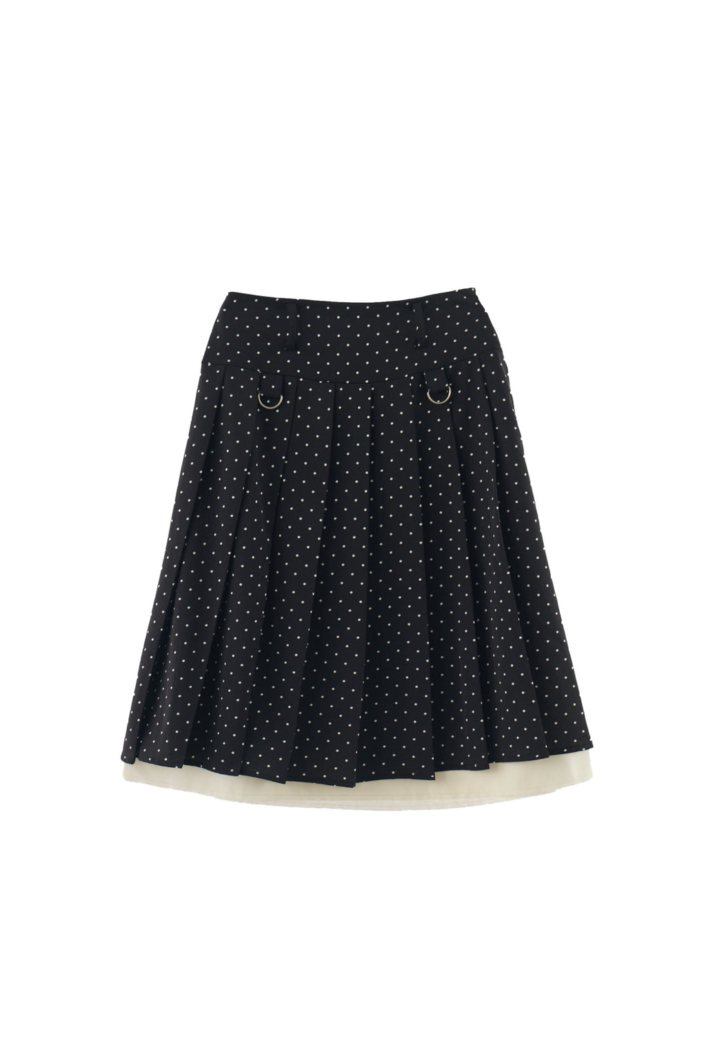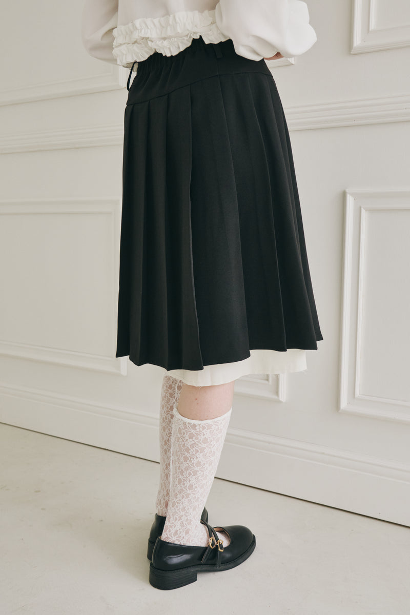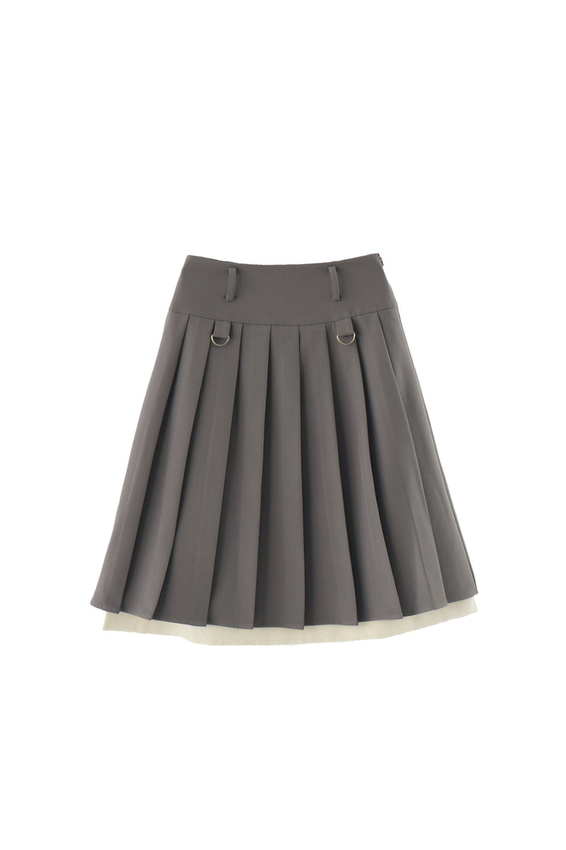 プリーツとレイヤード風デザインが存在感を放つミディ丈スカート。