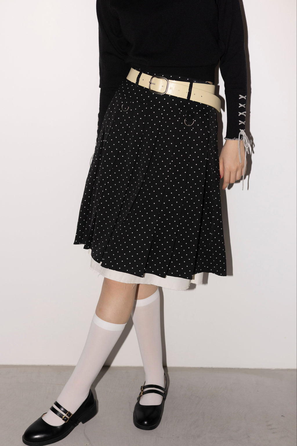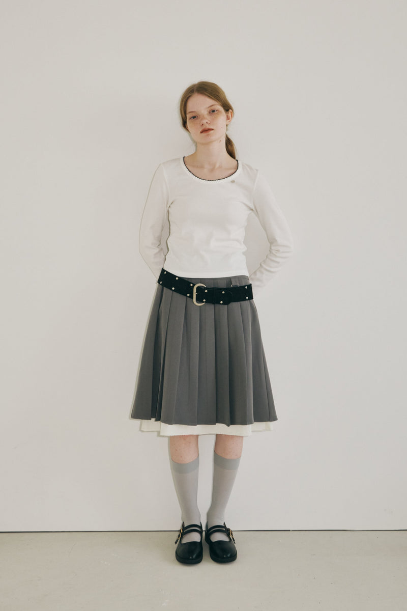 レイヤード風×プリーツが映える、主役級ミディスカート