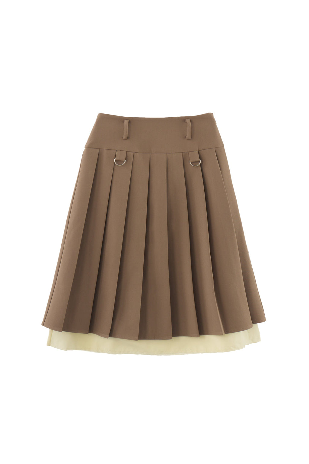 プリーツとレイヤード風デザインが存在感を放つミディ丈スカート。