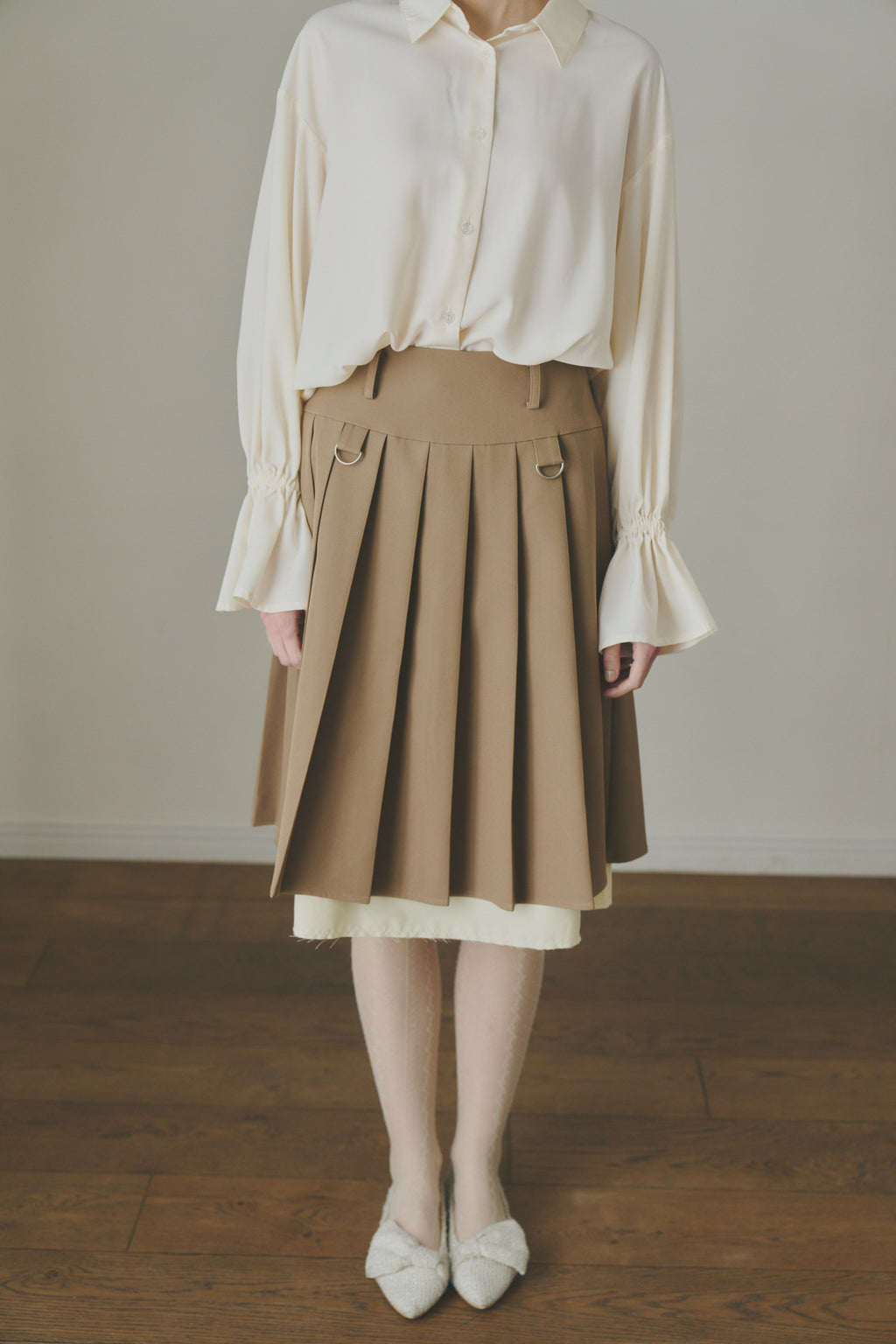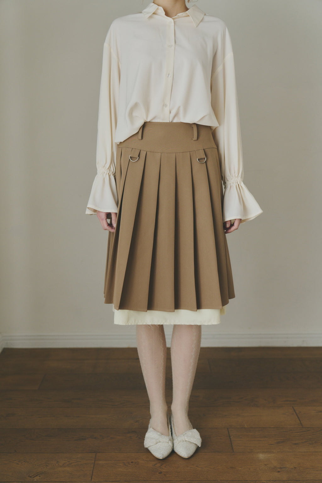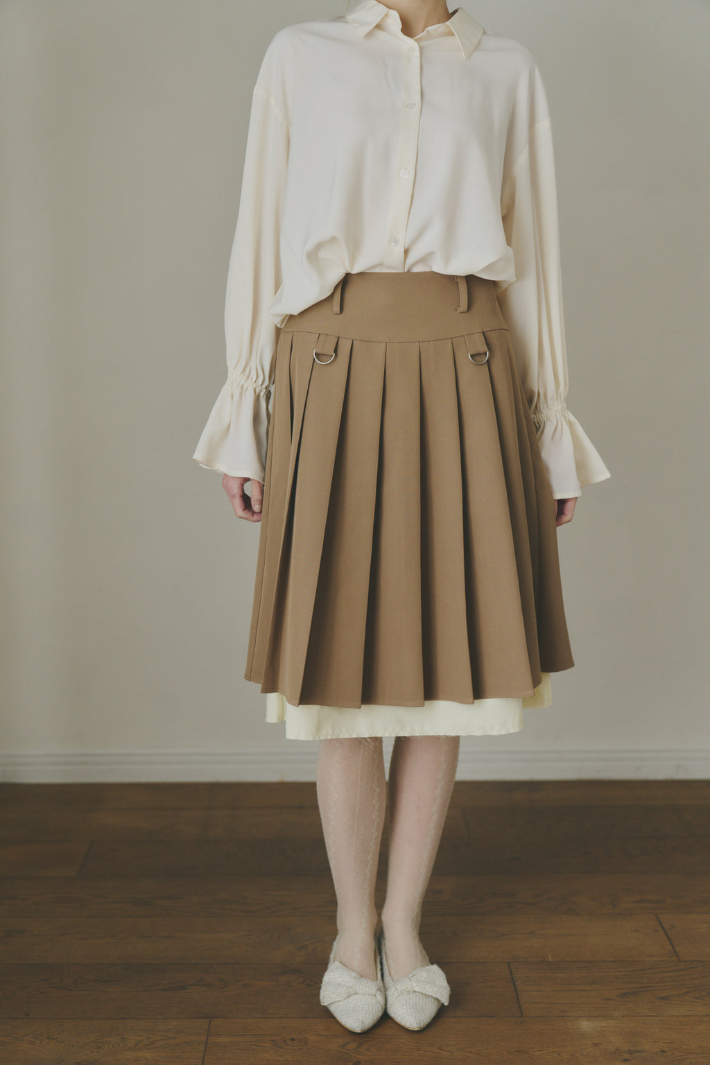 レイヤード風×プリーツが映える、主役級ミディスカート