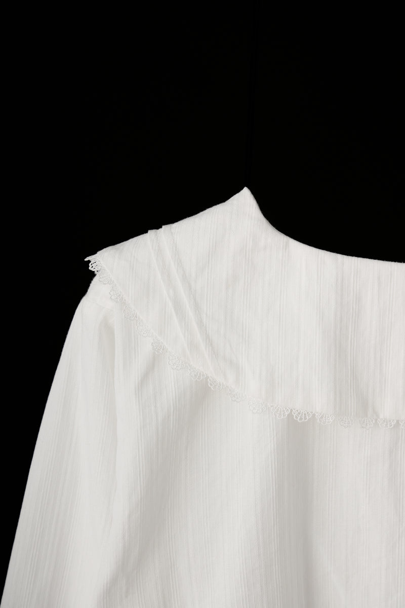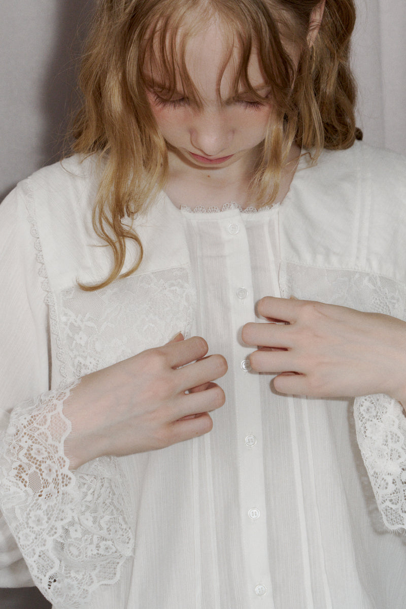 ・襟回りと前開き上部を華奢なピコレースで縁取り
