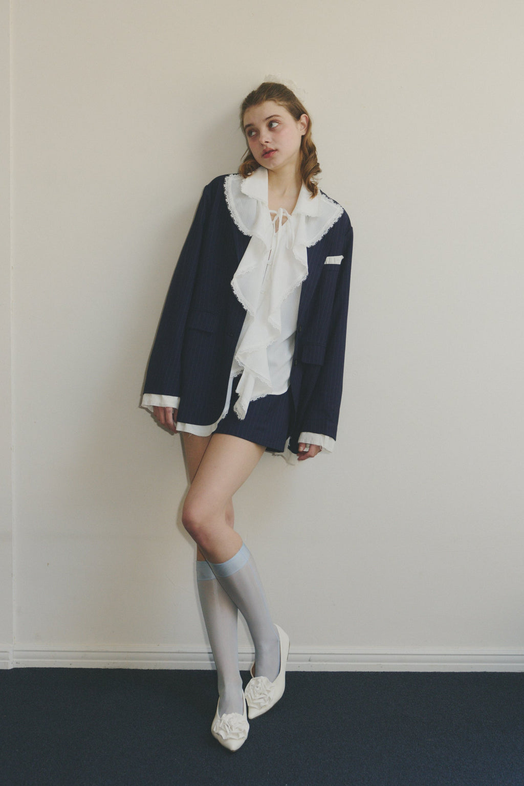 コンパクトなトップスを合わせればウエストフリルがアクセントになり、