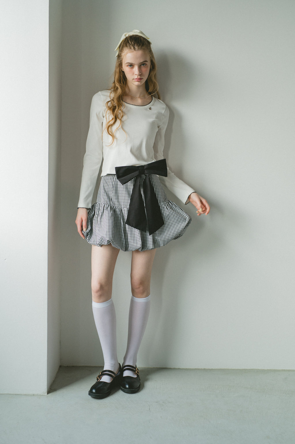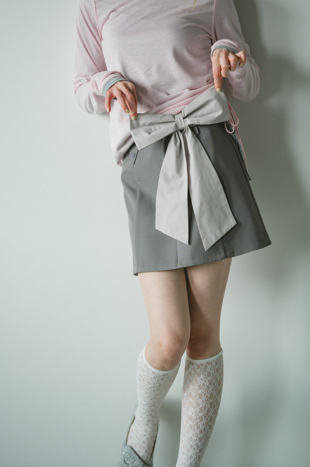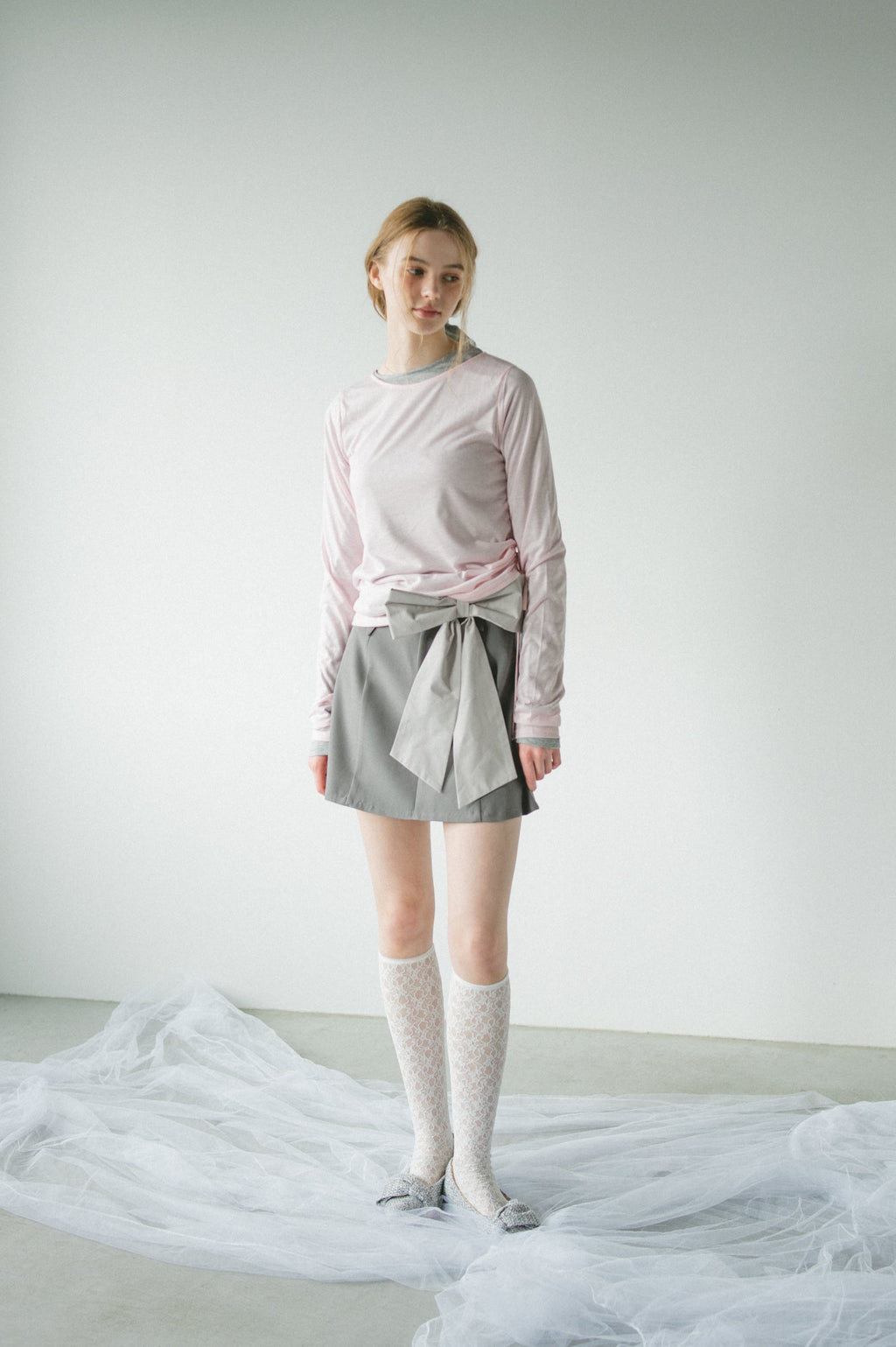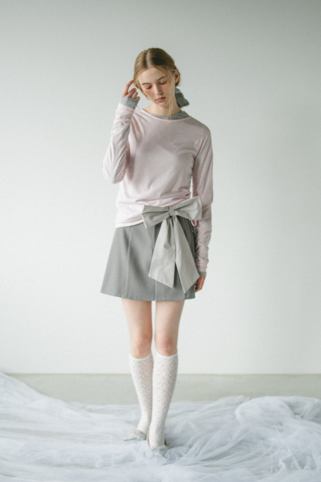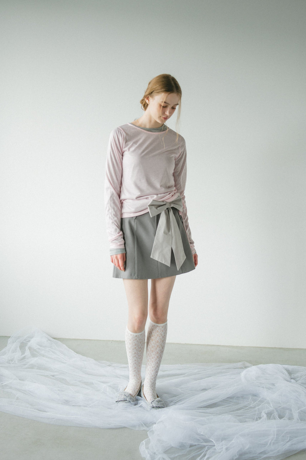 オーバーサイズトップスやジャケットの上にプラスすれば、