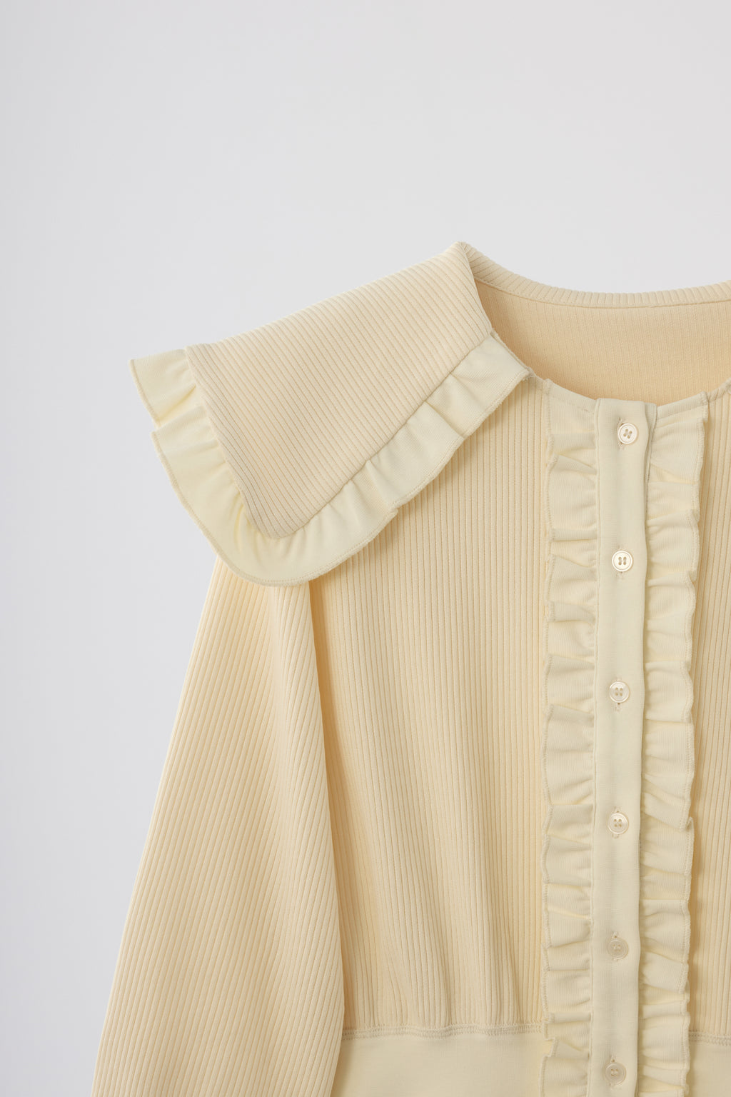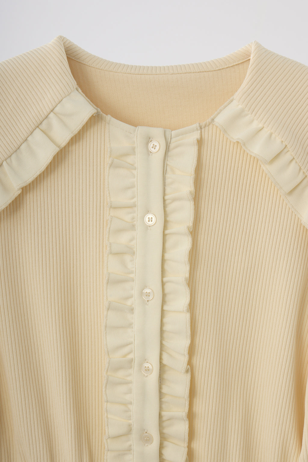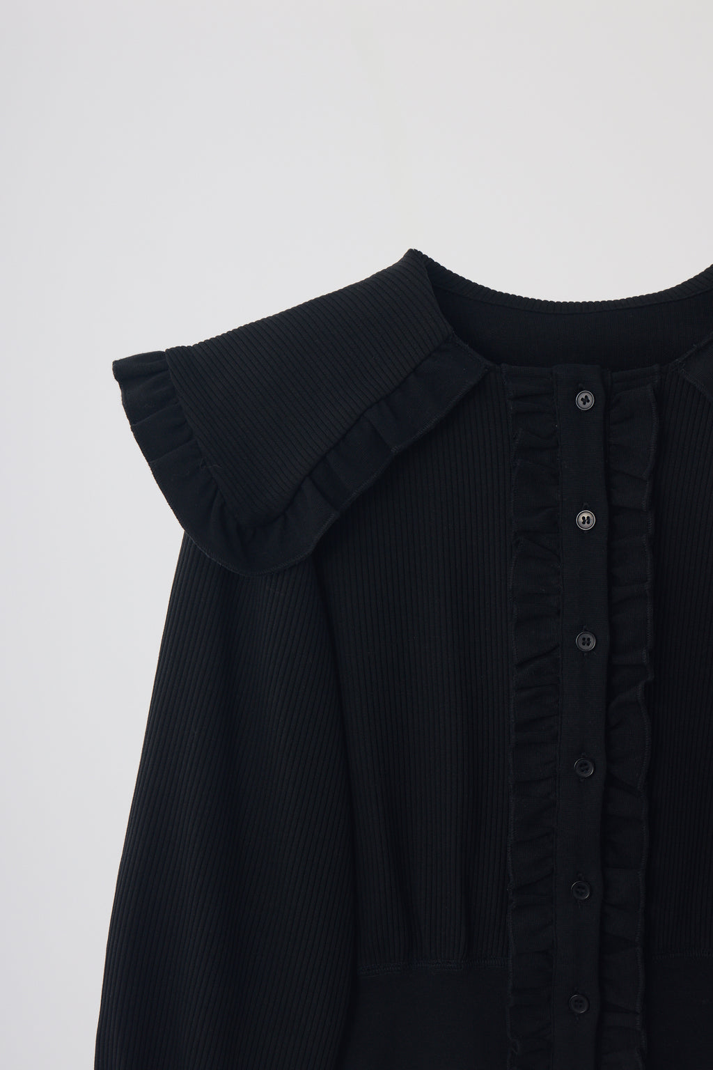 ・フリルと袖口は細リブ切り替えでメリハリをプラス