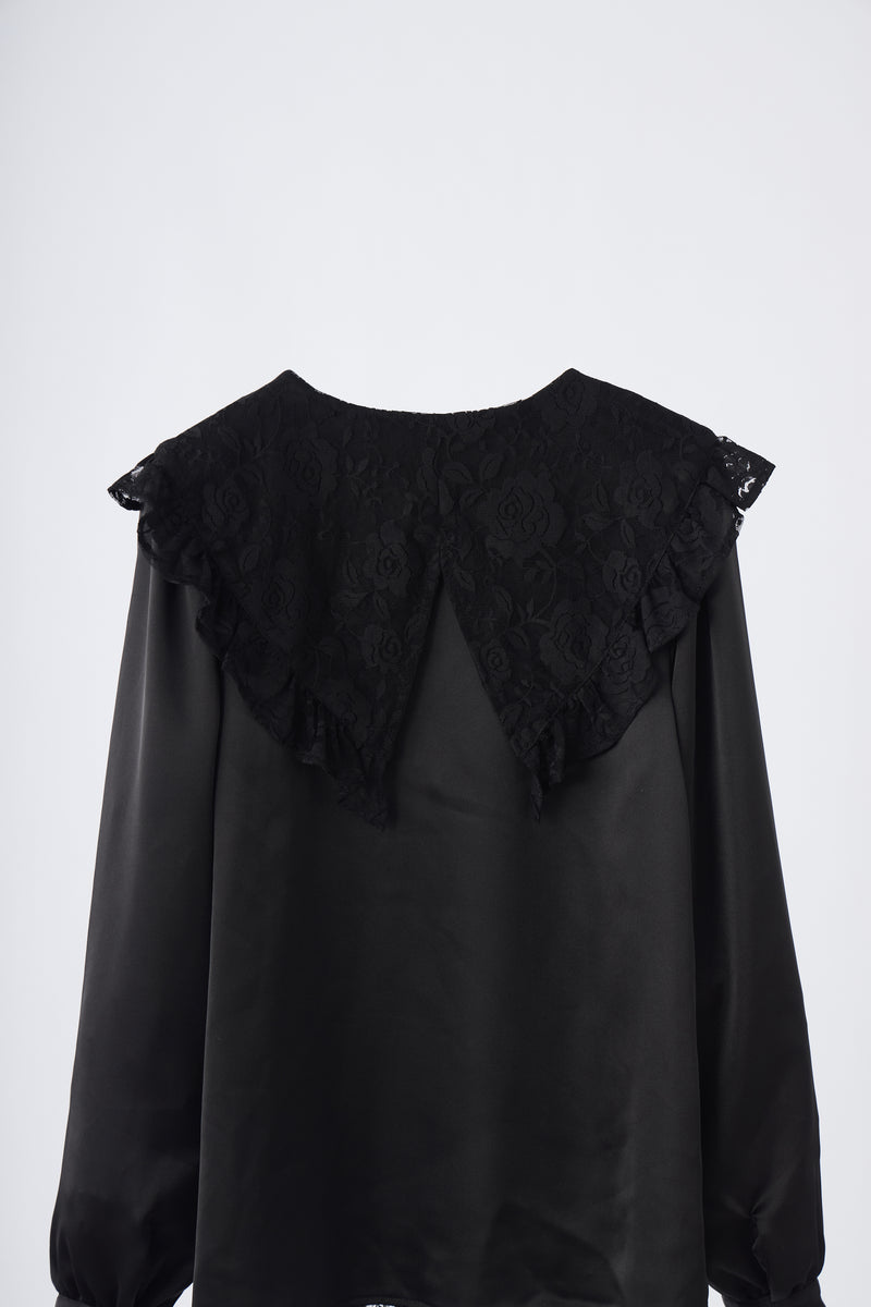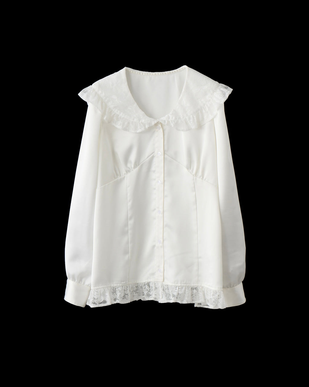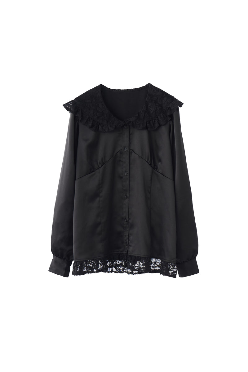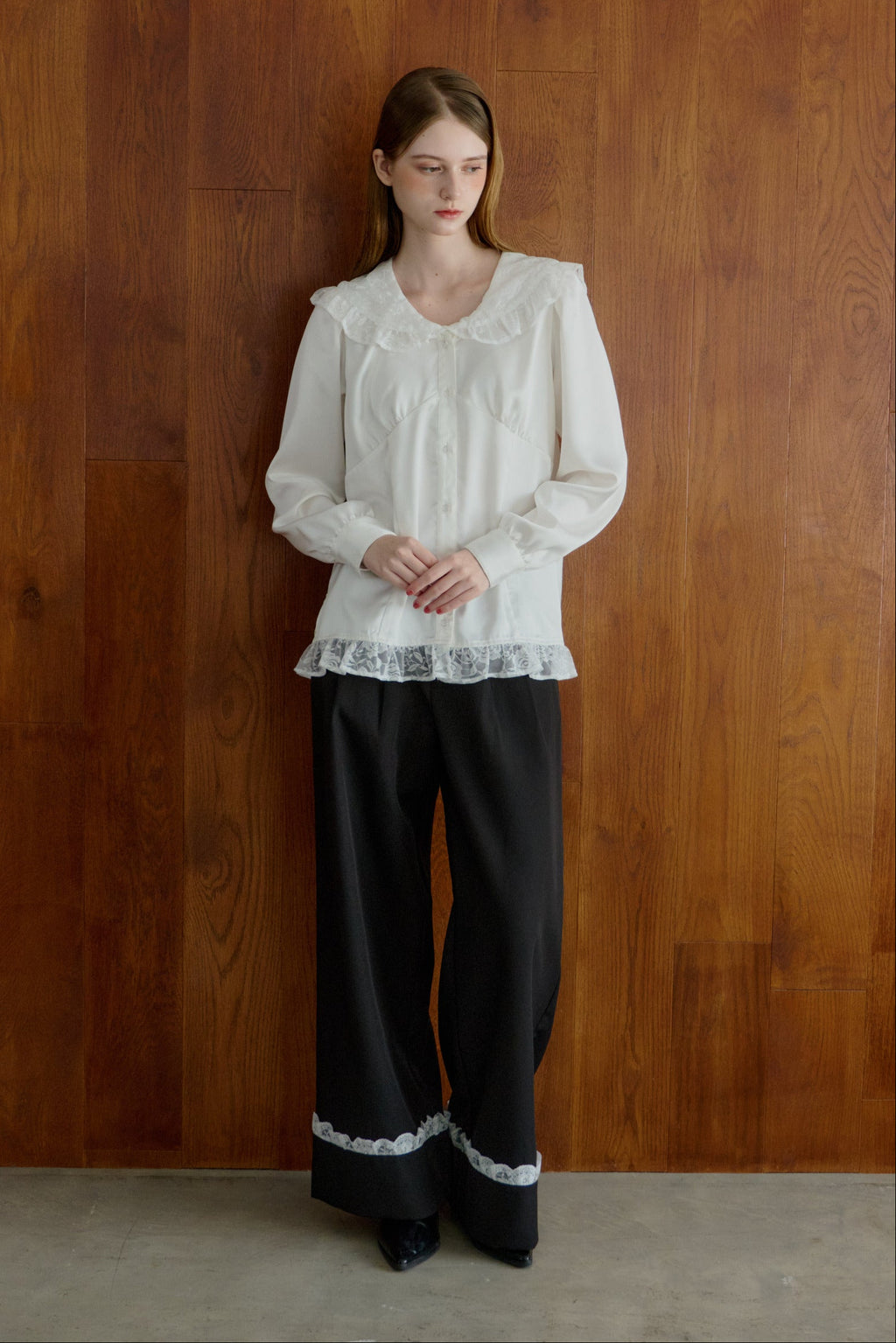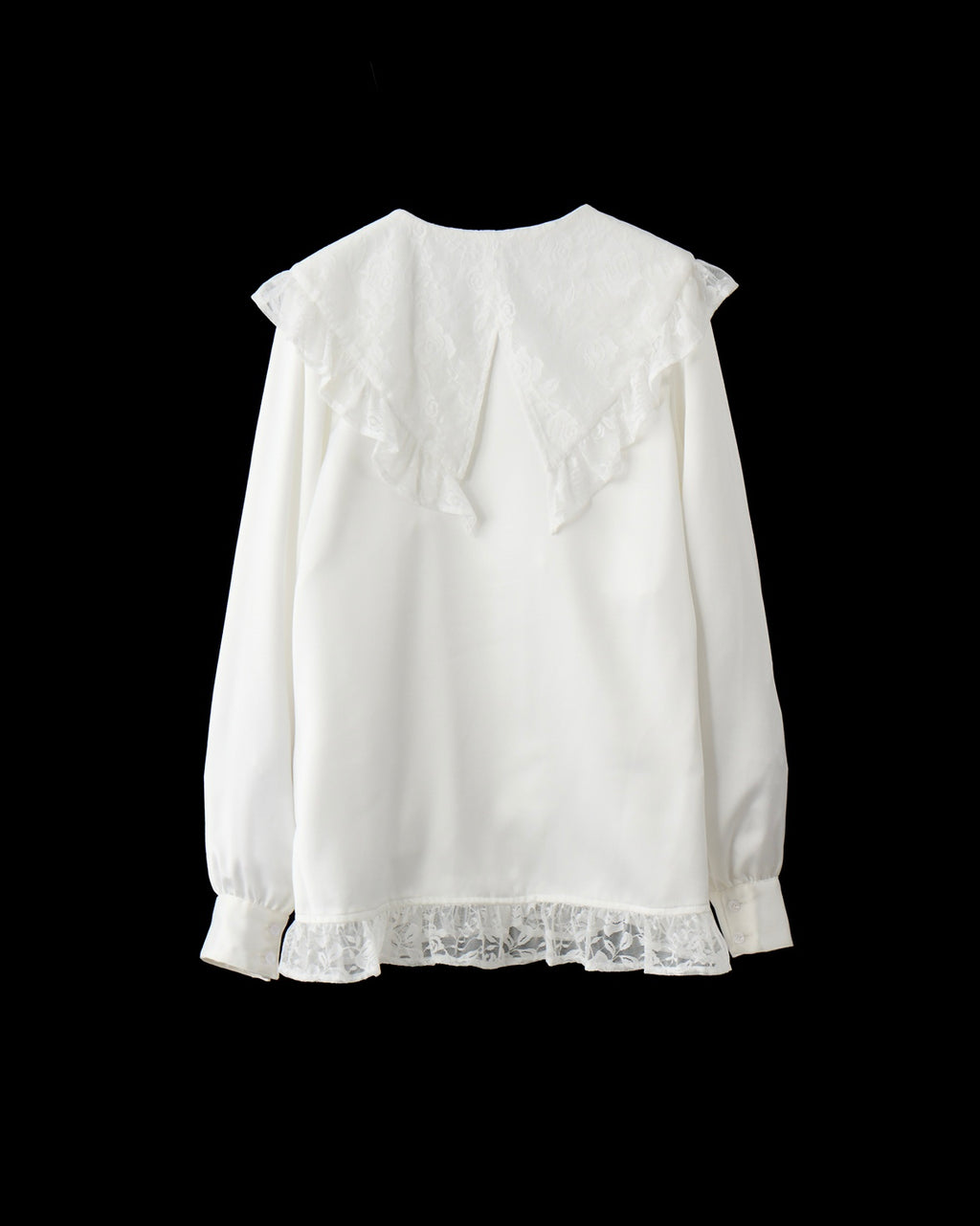 顔まわりを華やかに魅せる大きめのレース襟が印象的ブラウスは、