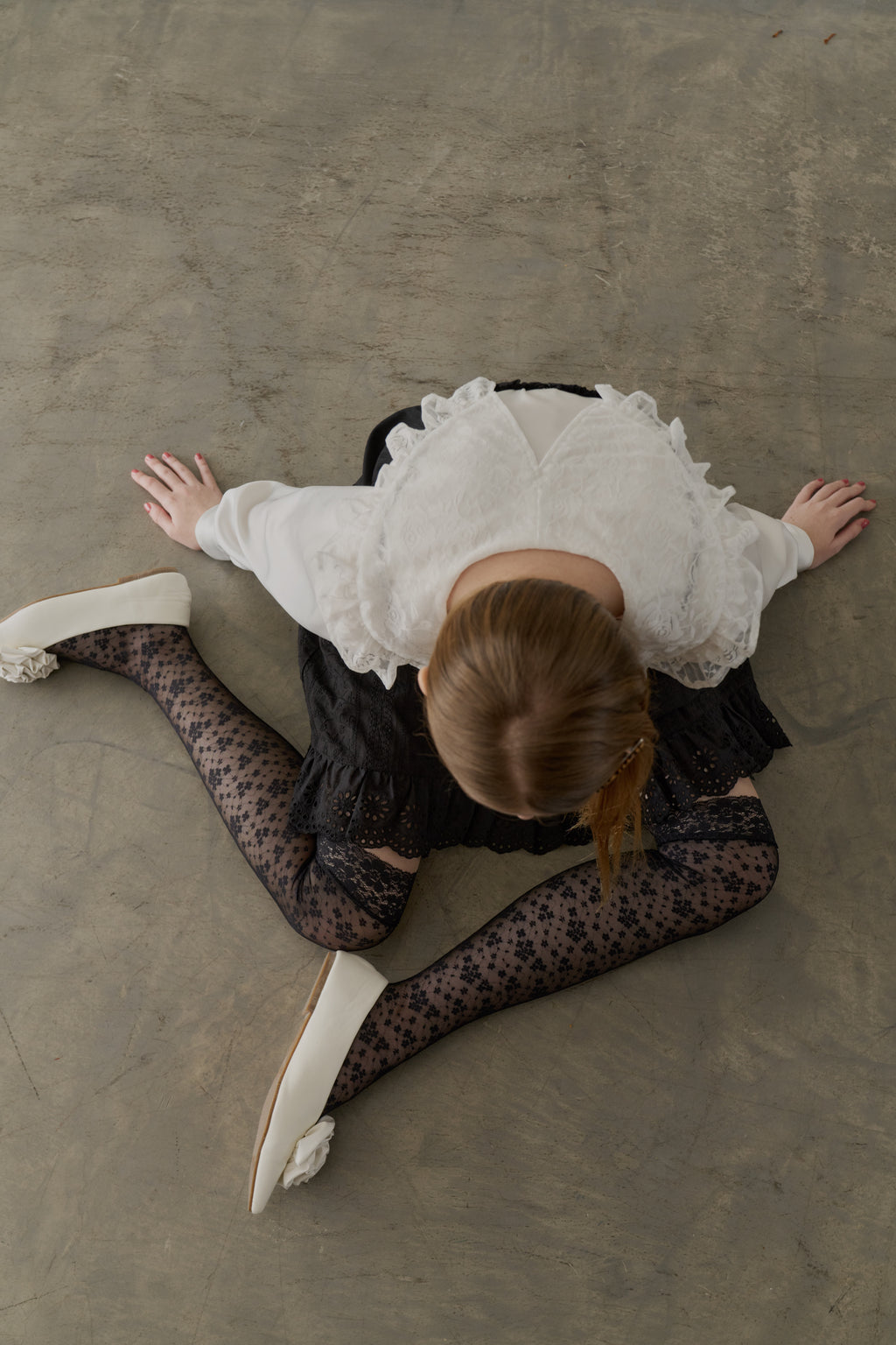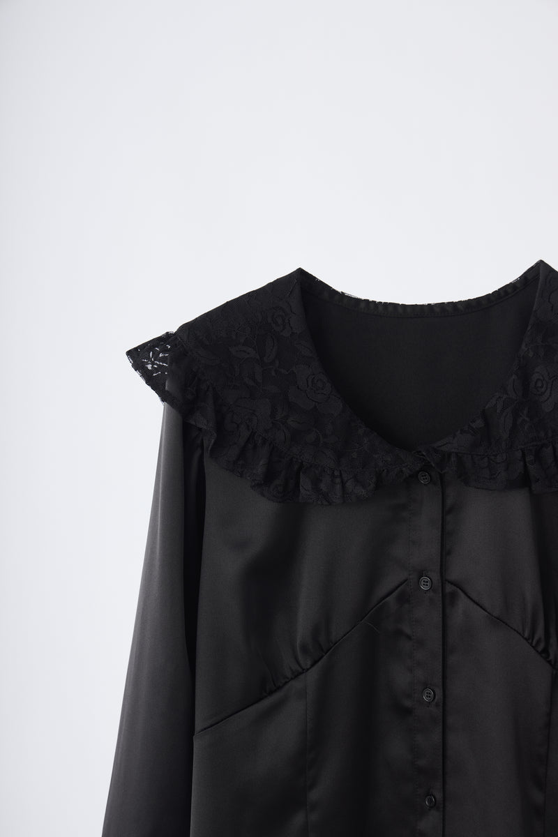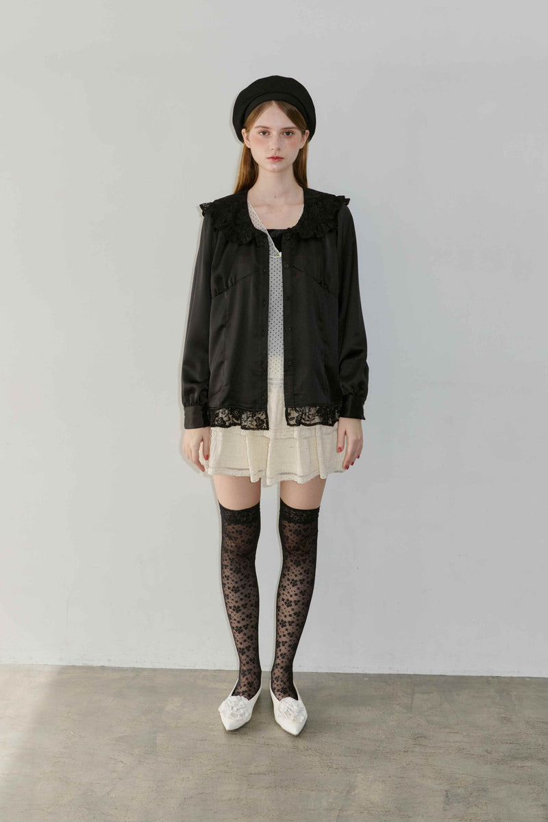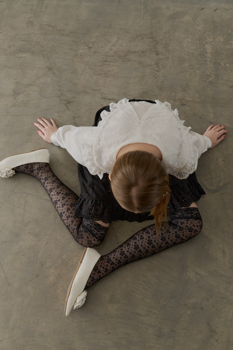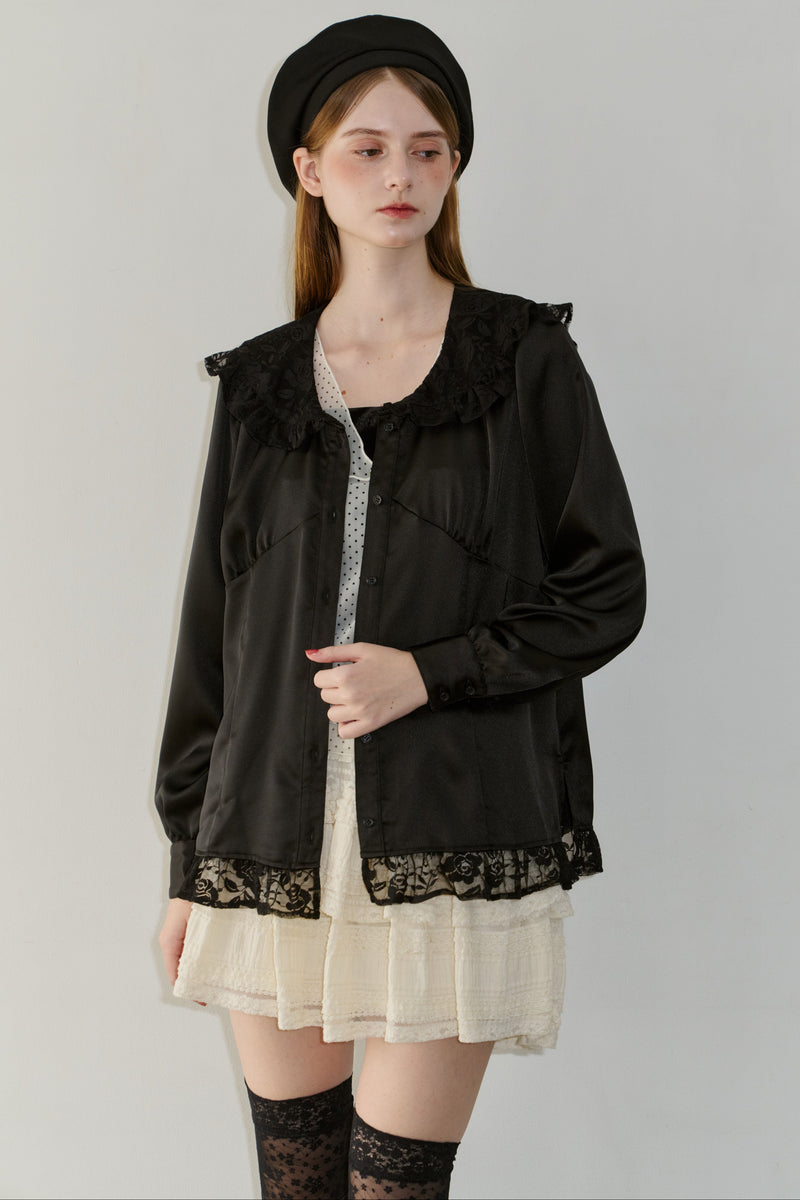顔まわりを華やかに魅せる大きめのレース襟が印象的ブラウスは、
