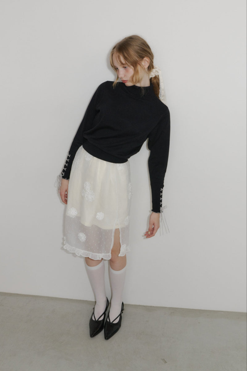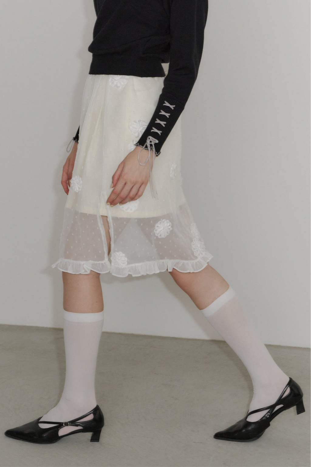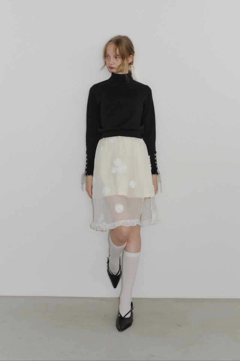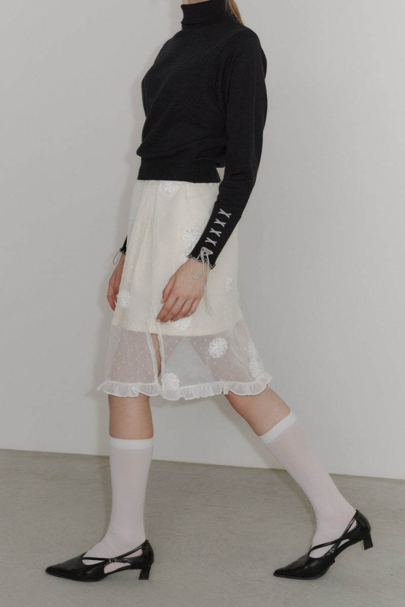 重ねるだけで雰囲気が変わる、フラワードットシアースカート