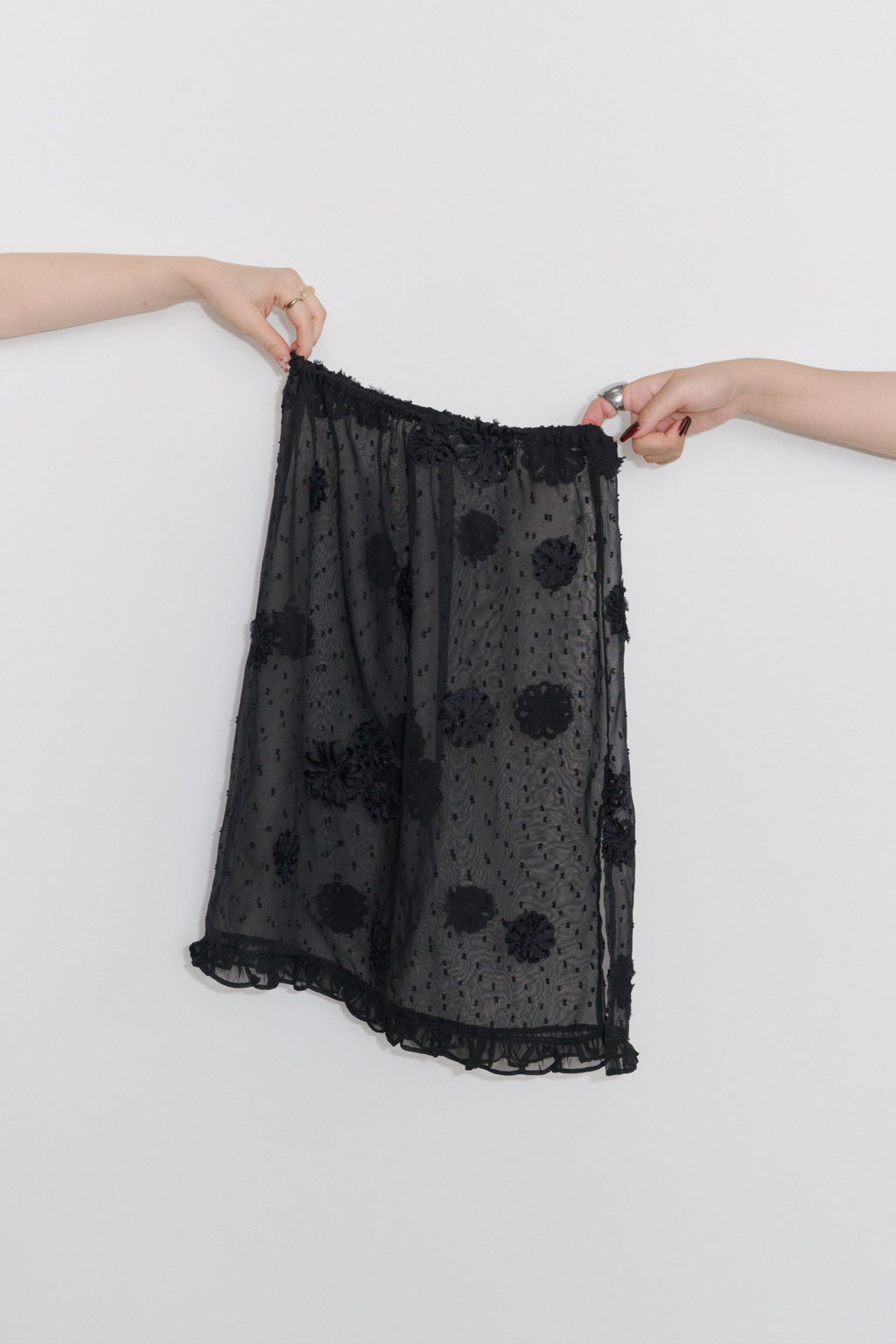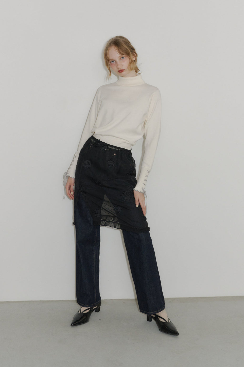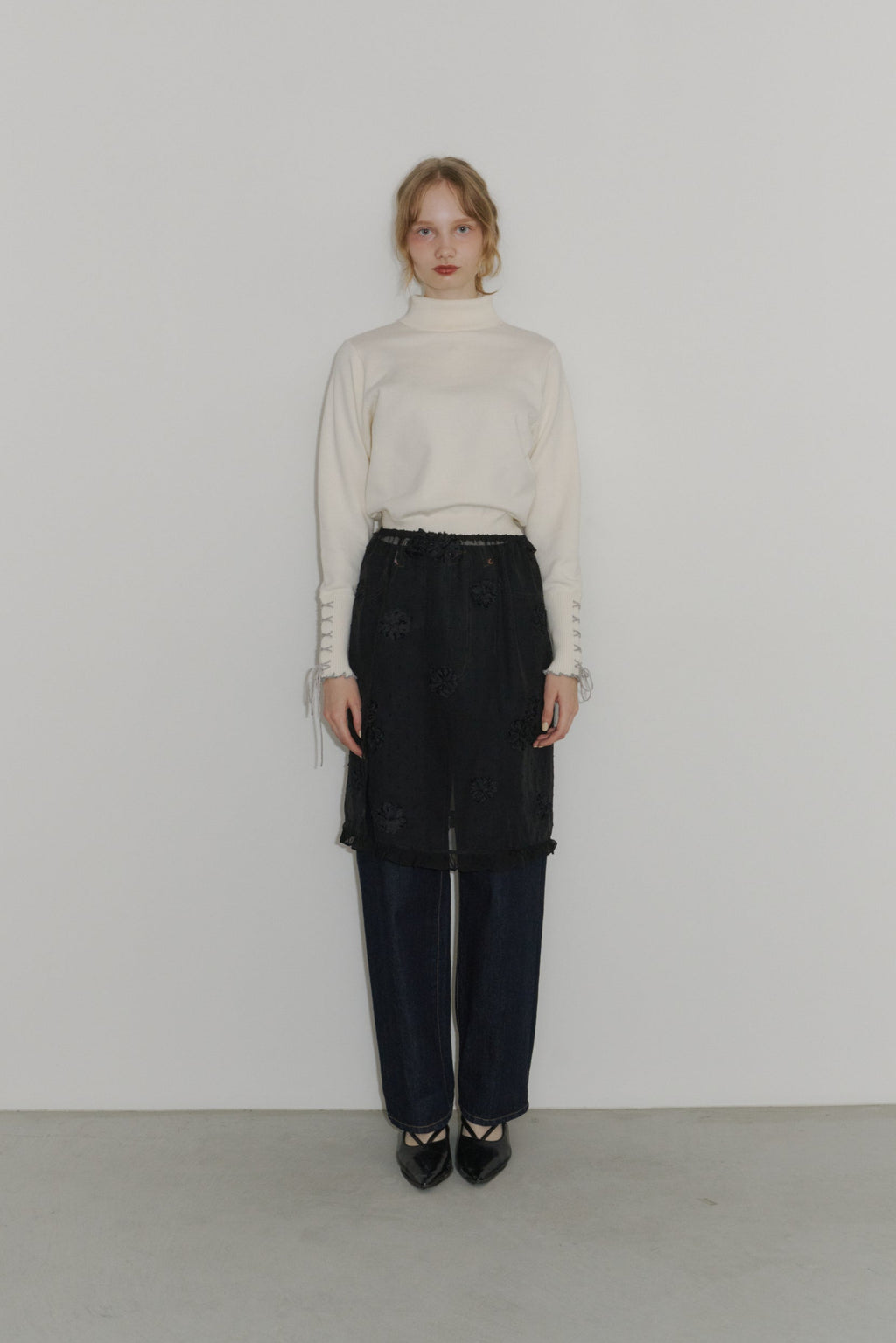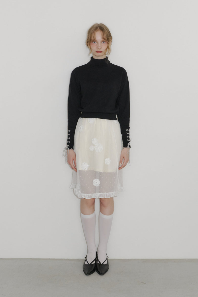 重ねるだけで雰囲気が変わる、フラワードットシアースカート